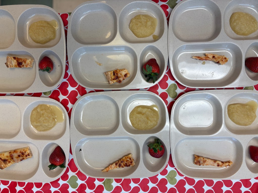 Morning class: Thank you to Nessa for bringing cheese pizza and Rain for bringing strawberries and applesauce! Afternoon class: Thank you to Heath for bringing cheese pizza and Annie for bringing strawberries! We all also enjoyed pretzels from preschool!
