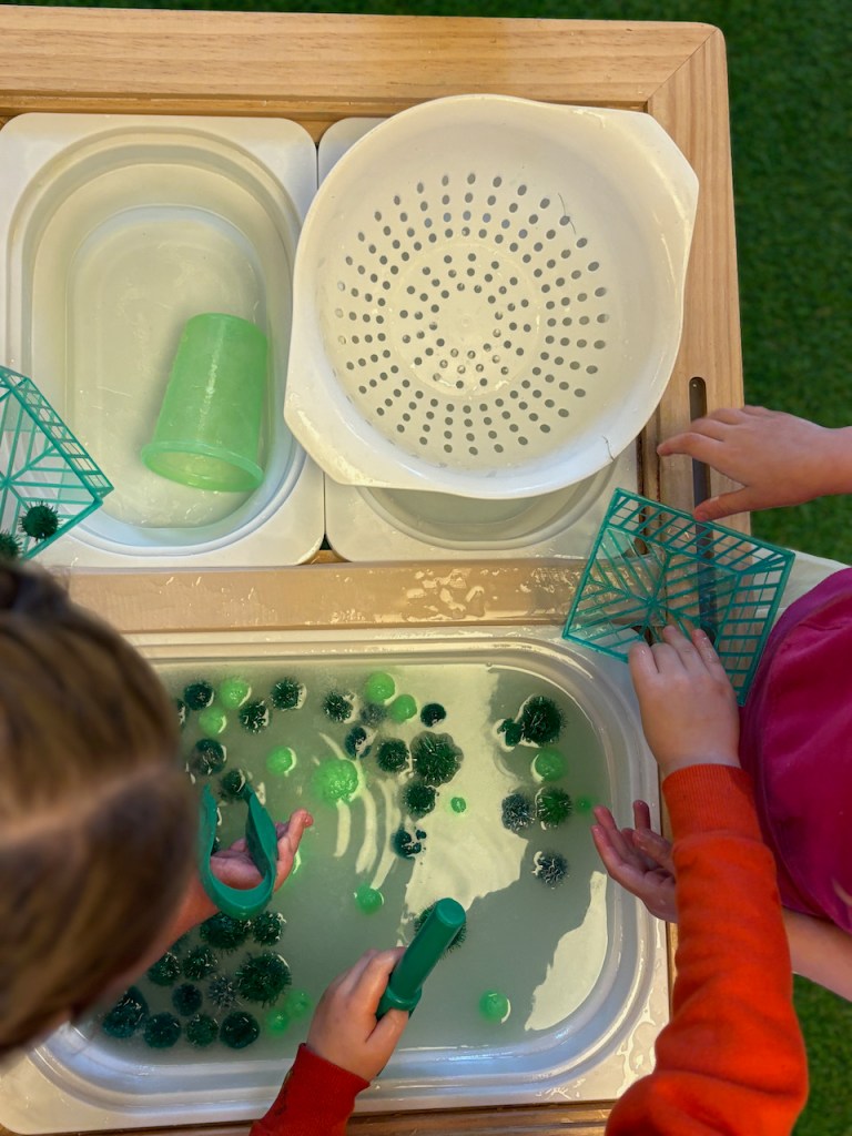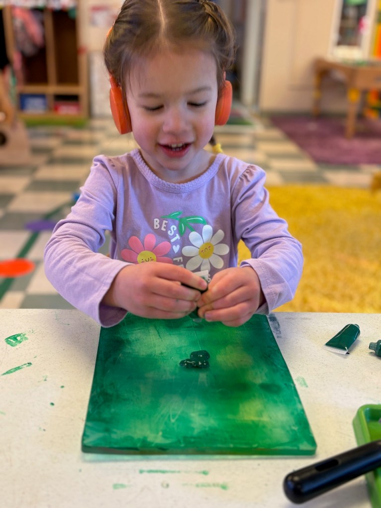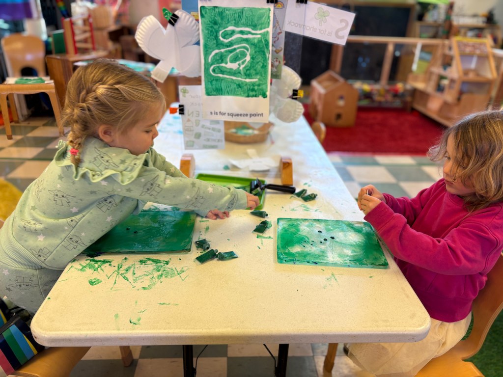 This week we welcomed March and the color green! We have certain areas of the classroom that change every month: the playdough and tools are green, the books are new, the Tub Table has green digging and sculpting tools, and all the Tiny Things are green.