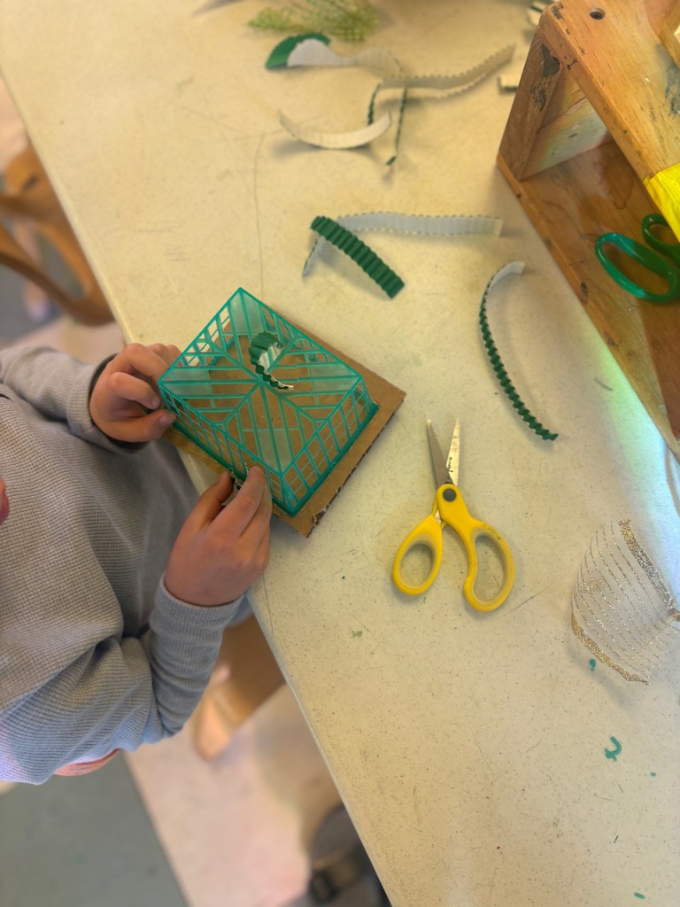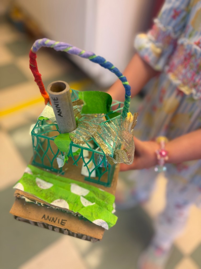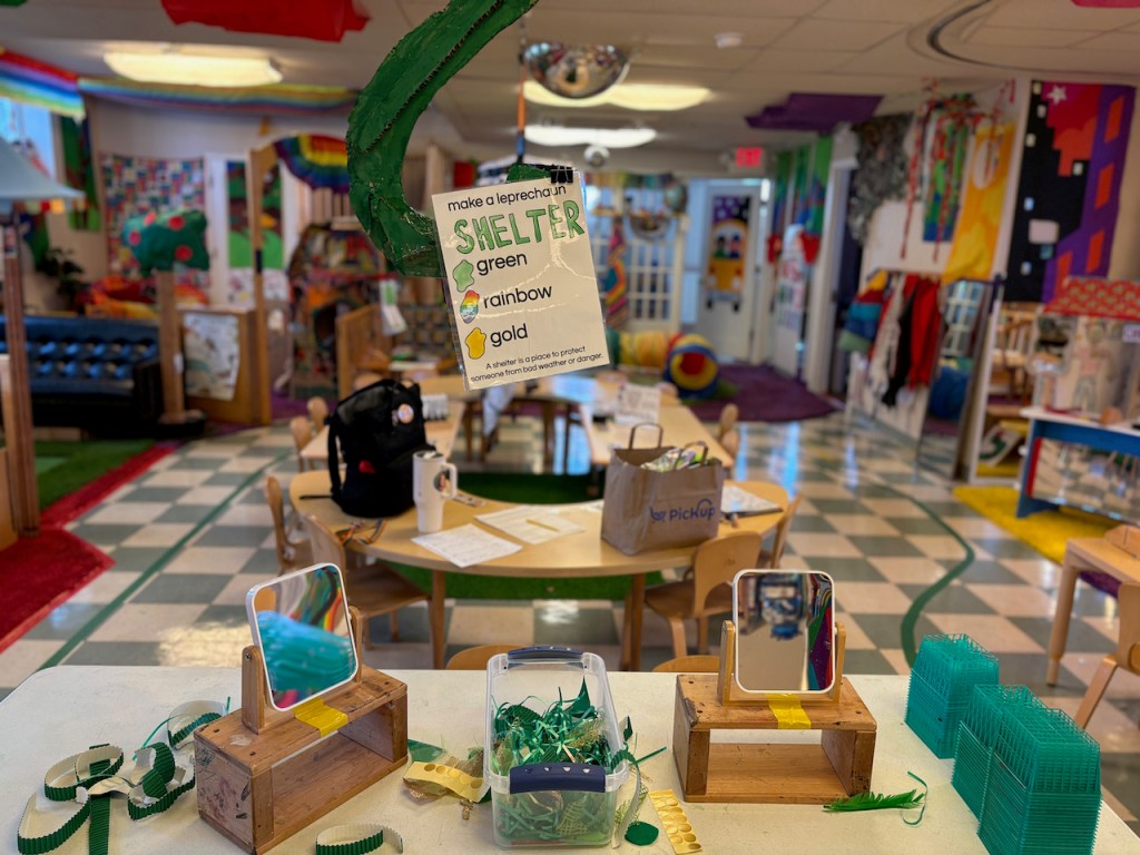 A leprechaun house! Children have access to ribbon, pipe cleaners, paper, tape and other odds and ends. We will work on them every day this week!