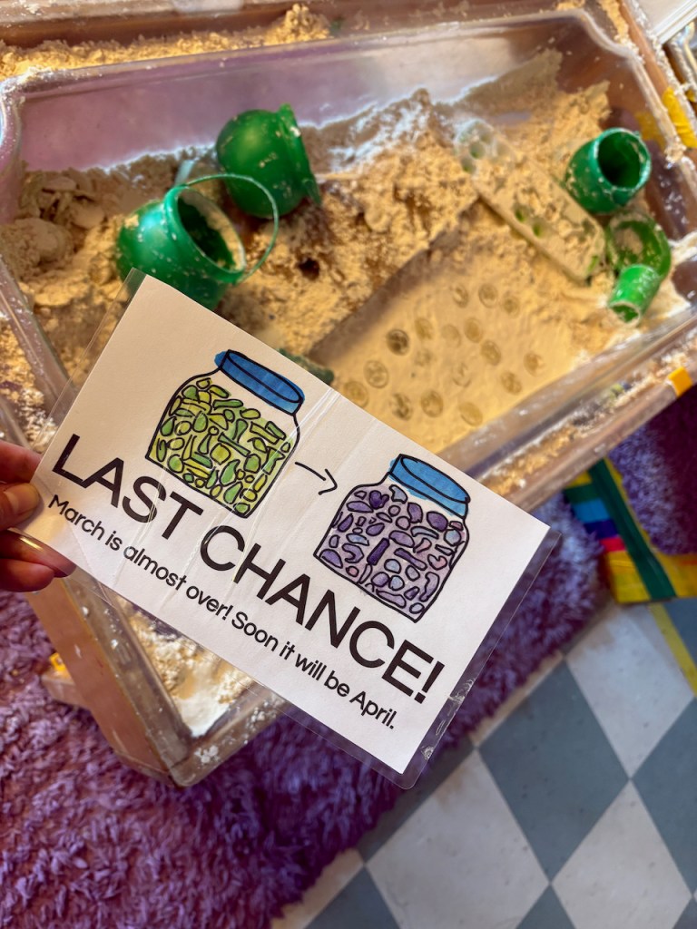 Today was also the last preschool day of March so we spent time with the green things that will be different the next time we come!