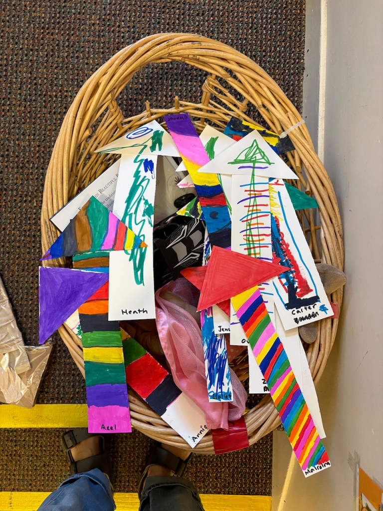 UP ARROWS: Today we colored arrows to use during Circle Time and as a tool for nonverbal communication to show what we want or what we are looking at. During Circle Time we used our paper arrows to point at each other’s Show and Tell things!