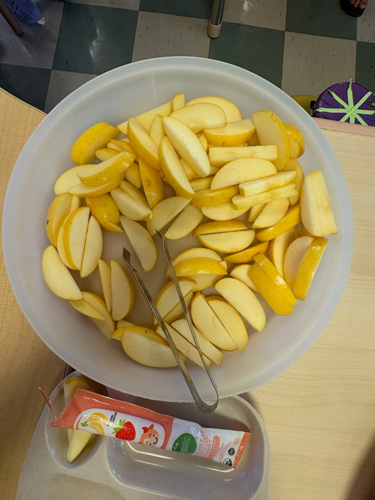 Y WHY JOKE: At Circle Time Ms Kristin teaches a word play joke. She shows the letter Y and asks what letter it is. When the children call out, “Y” Ms Kristin pretends they said, “Why” so she says something like, “Because I want to know. Will you please tell me what letter this is?” and then we repeat it many times. It’s a good time!