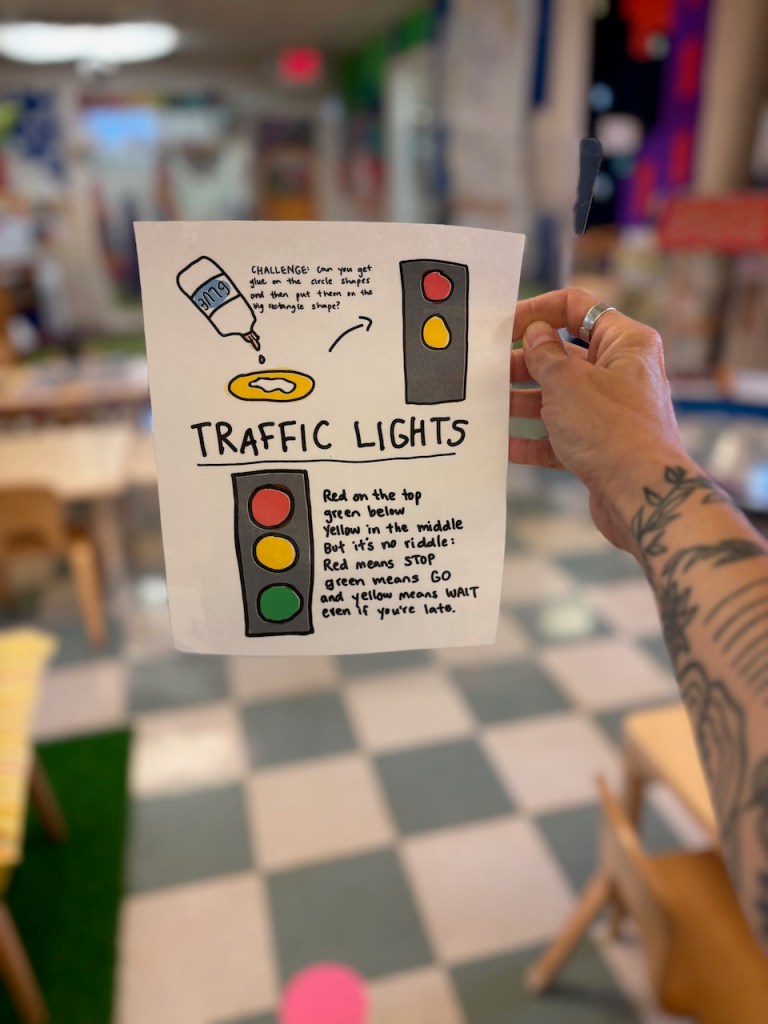 STORY TIME: We went on picture walks through4 books about transportation so we could find some yellow traffic lights. We found them and read about some ducklings that needed help crossing the road!