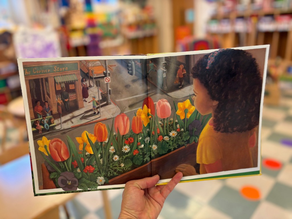 In Flower Garden, a family plants a garden in a window box even though they live in an apartment in the middle of a city. We looked in our journals to find the picture of Mr Morgan AND a yellow traffic light, just like in our book!