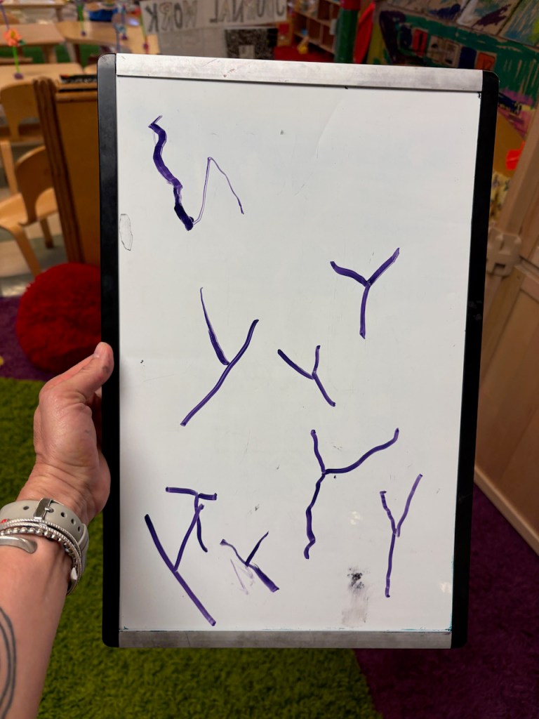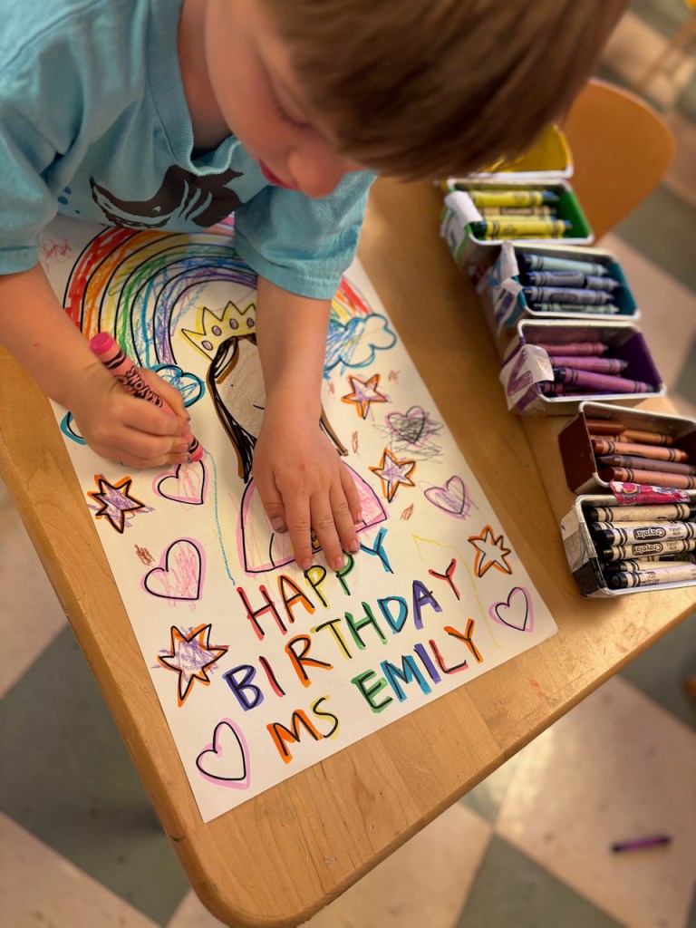 In the book it was the mother’s birthday. Our morning class had a connection because it was Ms Emily’s birthday! We celebrated with a balloon, a card, treats that her own mom made us, and we guessed how old she turned today. Happy Birthday, dear Ms Emily! Thank you for coming to preschool on your birthday!
