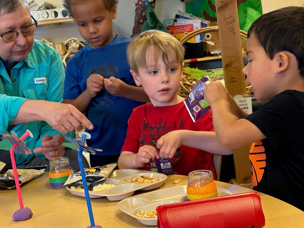 P.S. We have 16 friends graduating to Kindergarten so we’re spending time practicing opening a variety of bags and containers at Snack Time! Here you can see friends giving advice on different techniques.
