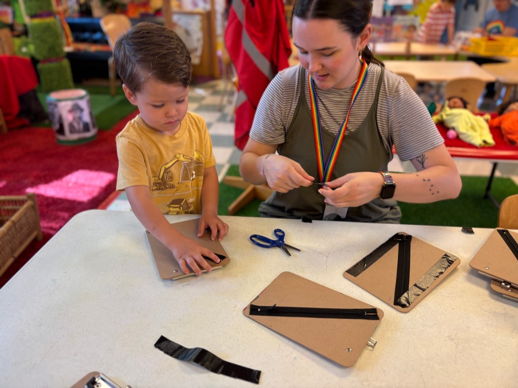 ZIPPER BOARDS: We all had a zipper board to take home after adding more black tape and finding our names hidden behind the zippers! The zipper boards are actually clip boards, so there was some writing and drawing going on too!