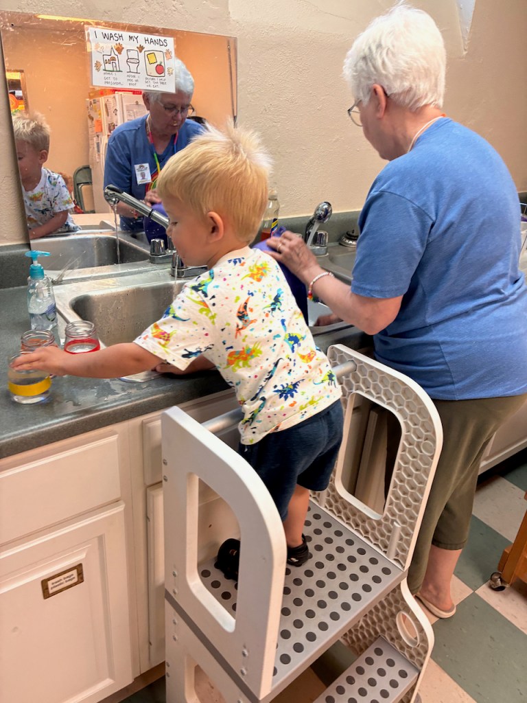 Jumping Land made a spontaneous return at the Circle Time rug. Ms Kristin read some favorite nursery rhymes that a lot of parents and grandparents likely know too. Today we celebrated a friend’s birthday in the morning and had popsicles from Grandma Mona in the afternoon. We sent our watermelon snack rinds home with some friends who have chickens…they enjoyed it! Next Wednesday is our last day of school!