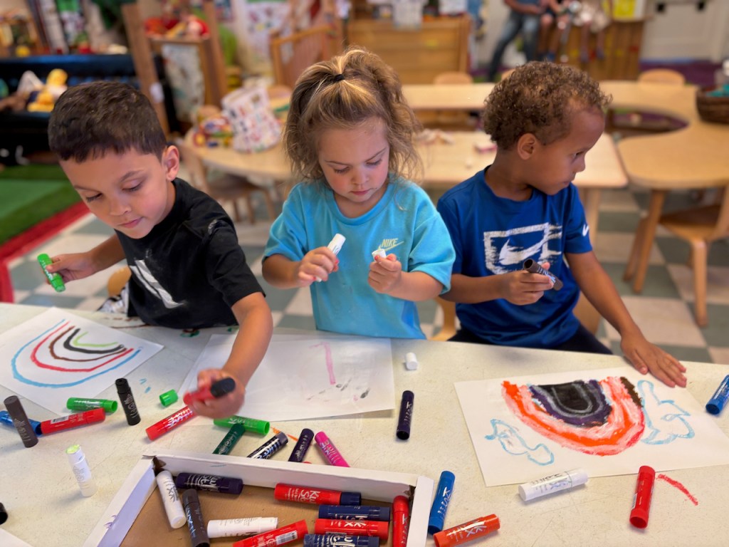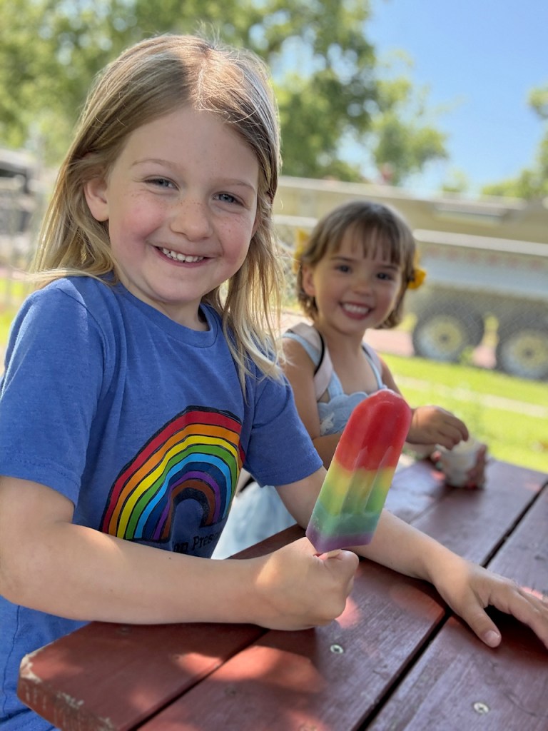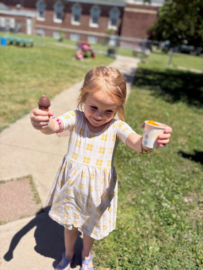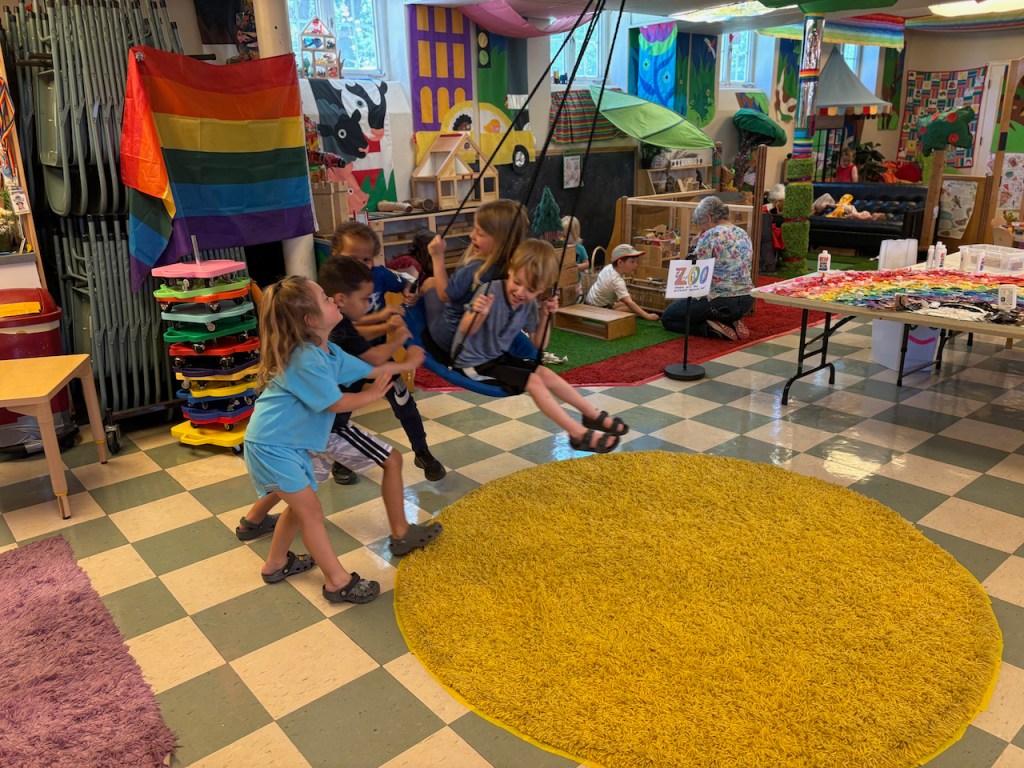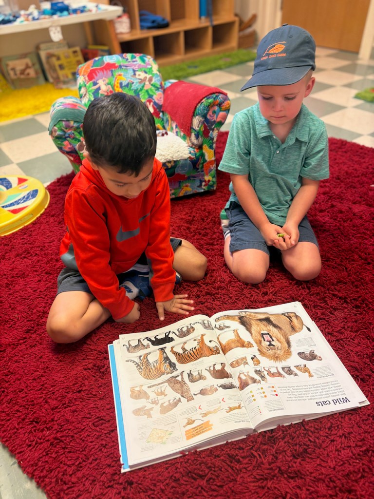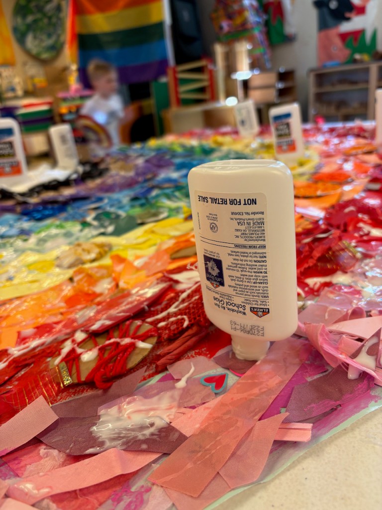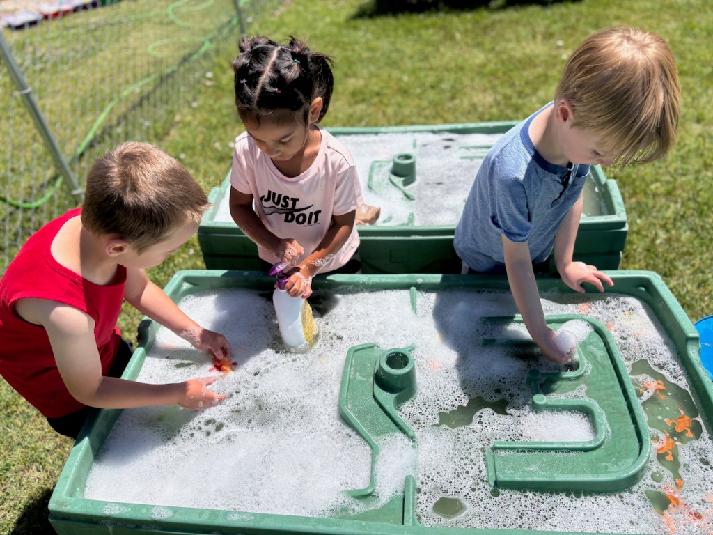 On this very last day of the 2024-2025 school year we used up the paint sticks on our own paintings and on the cardboard house, we played with new puzzles and fishing poles, we pushed each other on the swing. In the morning class we had summer birthday cupcakes and in the afternoon we had a popcorn popsicle party. The mulberries are still ripe for picking and eating, the plastic frogs are in the warm soapy water outside. We cleaned the room so much it looked like preschool hadn’t happened today. Thank you, dear families for allowing us to spend time with your children…we have seen tremendous growth in each child and it is so rewarding. Click on the photos below to see full size and also to download as you like: