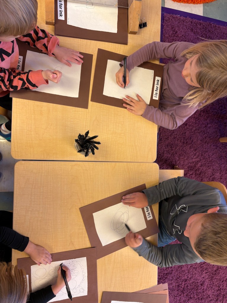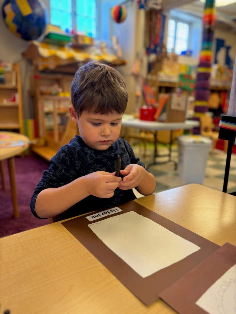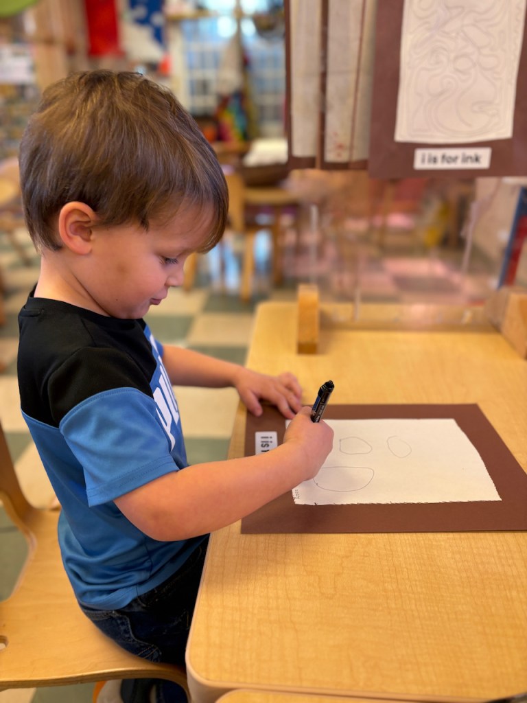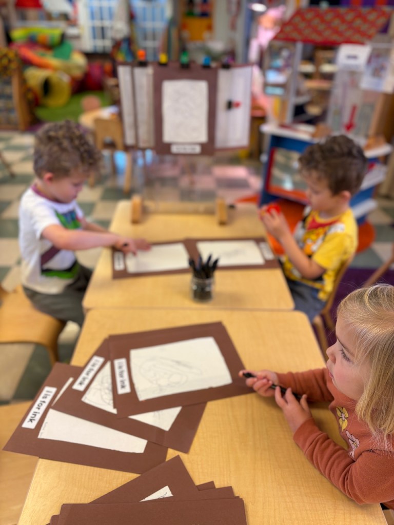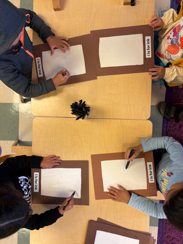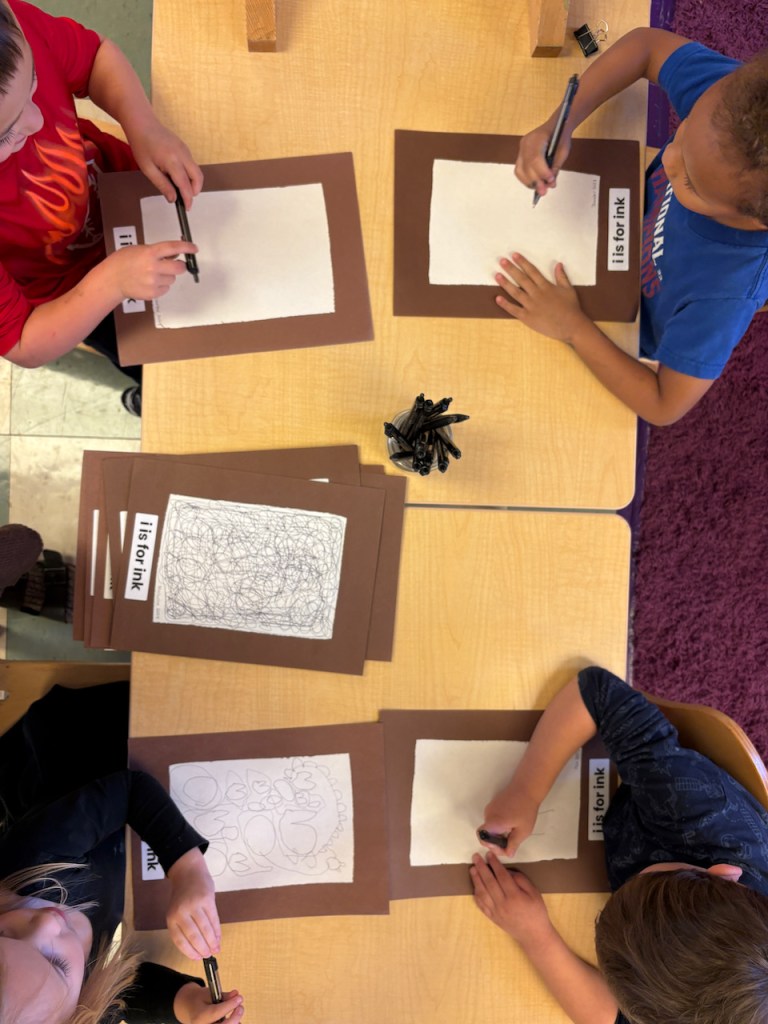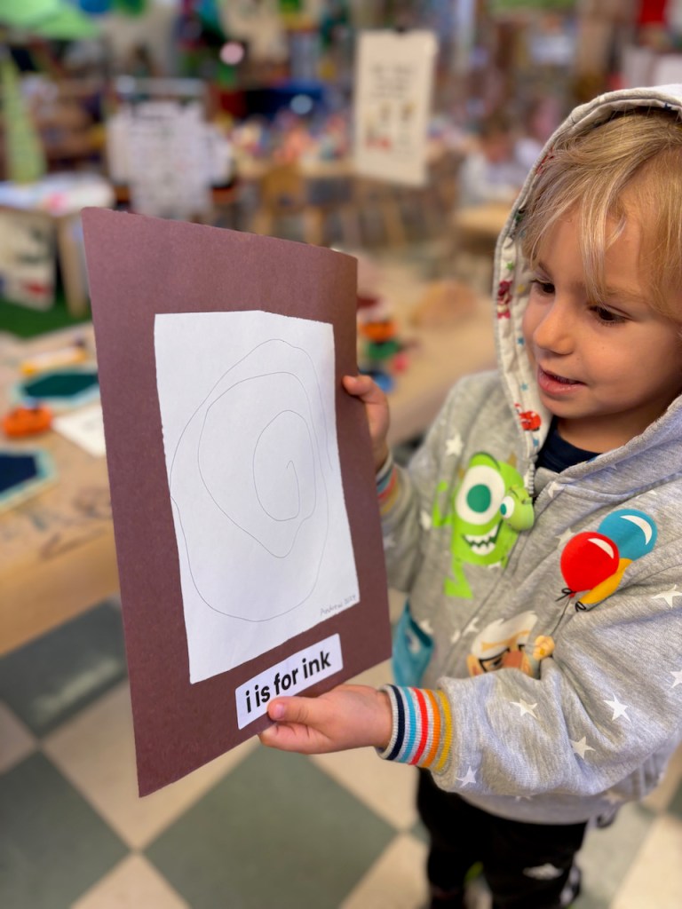 Ink Masterpiece: children are using ink pens this week to create an ink masterpiece with instrumental music in the background. We sure feel like we’re in an art gallery!