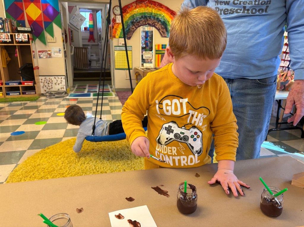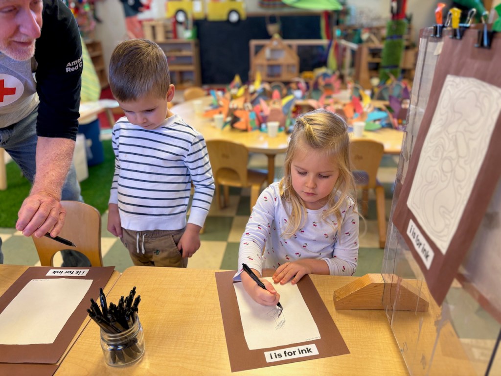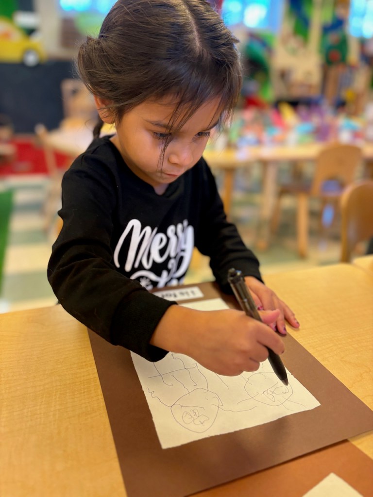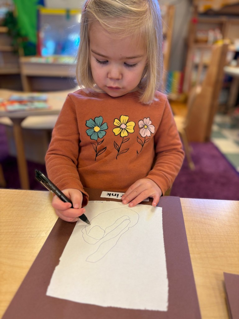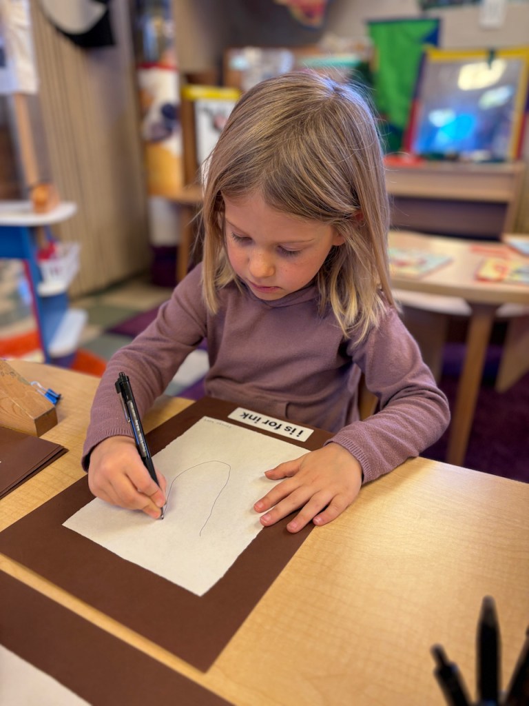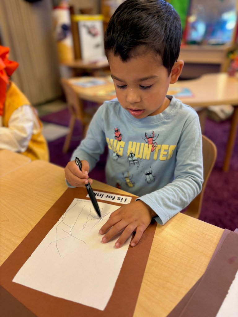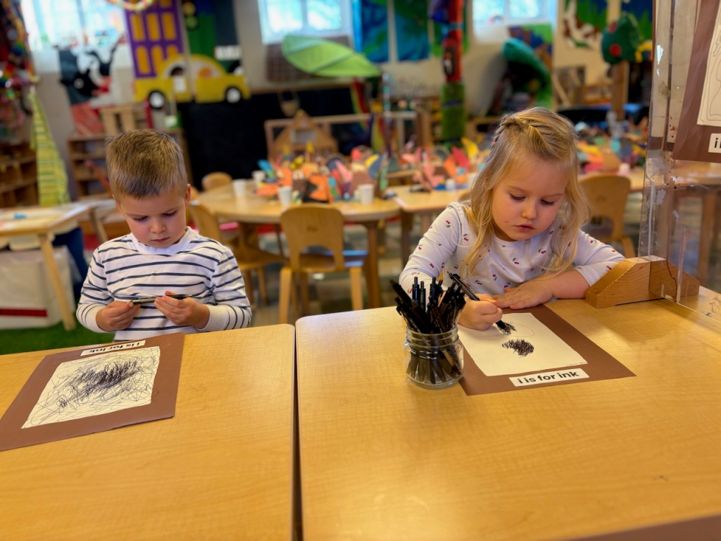 Ink Masterpiece: children are using ink pens this week to create an ink masterpiece with instrumental music in the background. We sure feel like we’re in an art gallery!