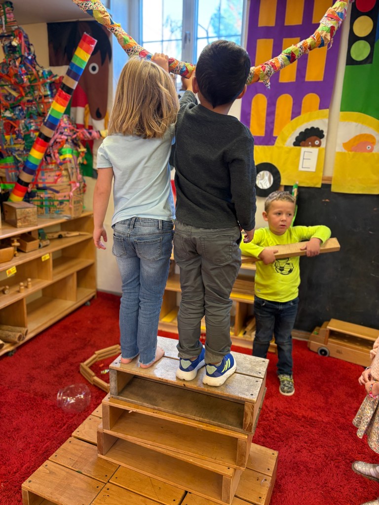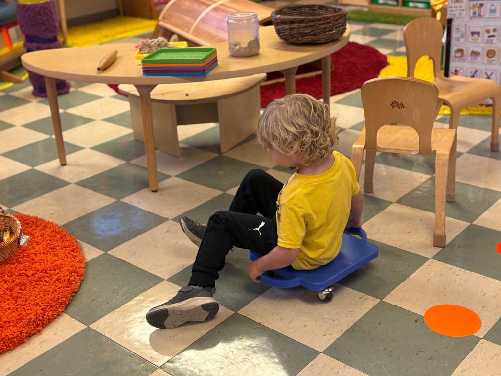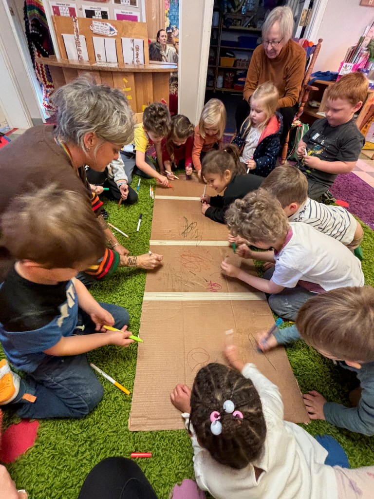 Our Scribble Art is getting more colorful because children can use whatever color they like! Today children practiced stopping their scribbling when the bell rang. Very tricky!