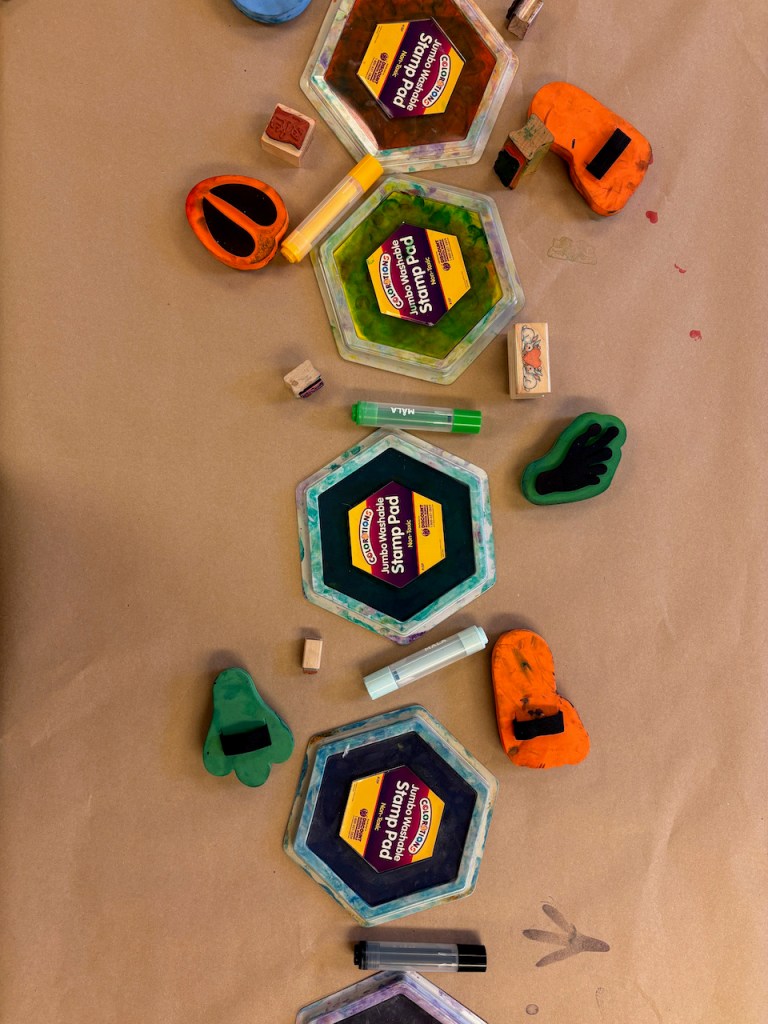 Ink Pads and Stamps: We have an entire table set up with washable ink pads and a variety of stamps. We’ll use the ink pads for Journal Time this week too.