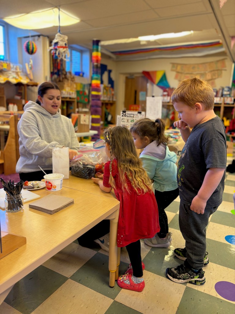 In the afternoon we had Doritos, mac and cheese with corn, apples and granola! Thank you friends!