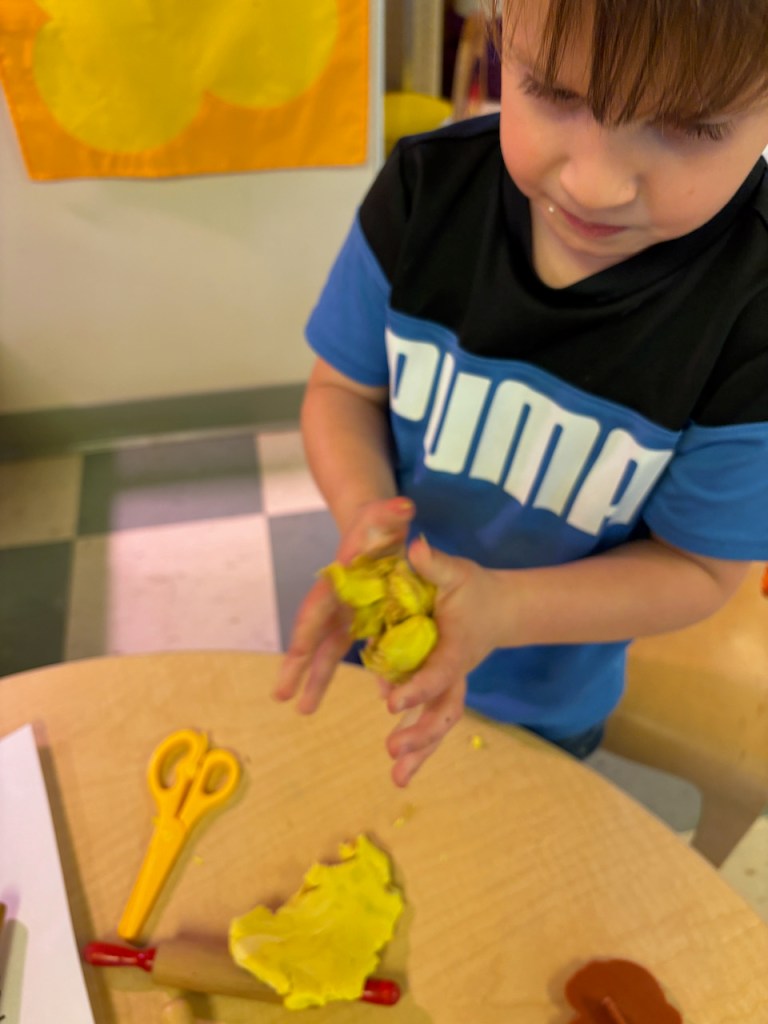 Ice Play: we have ice in the Water Table this week to hold, feel, observe and try to get it to melt! We also have ice cube trays in the Tub Table to pretend that Cloud Dough is ice!