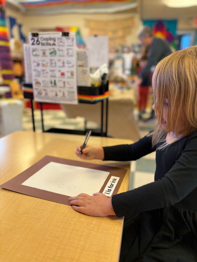 This week we are using ink in a variety of forms and a lot of I statements. Our Coping Skill is scribbling-a perfect outlet for young children! Take a look at how we played today: