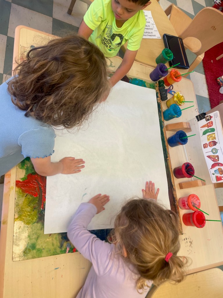 What do you do if you’re hot at preschool? Children can remove outerwear, long sleeves, socks, shoes, etc. In warm weather months they can stand under our HVAC vents or use a paper fan. Some children like to have a cold wet paper towel pressed gently on the back of the neck, chest or forehead (and if you blow on the wet skin it is even more of a cool down effect!).
