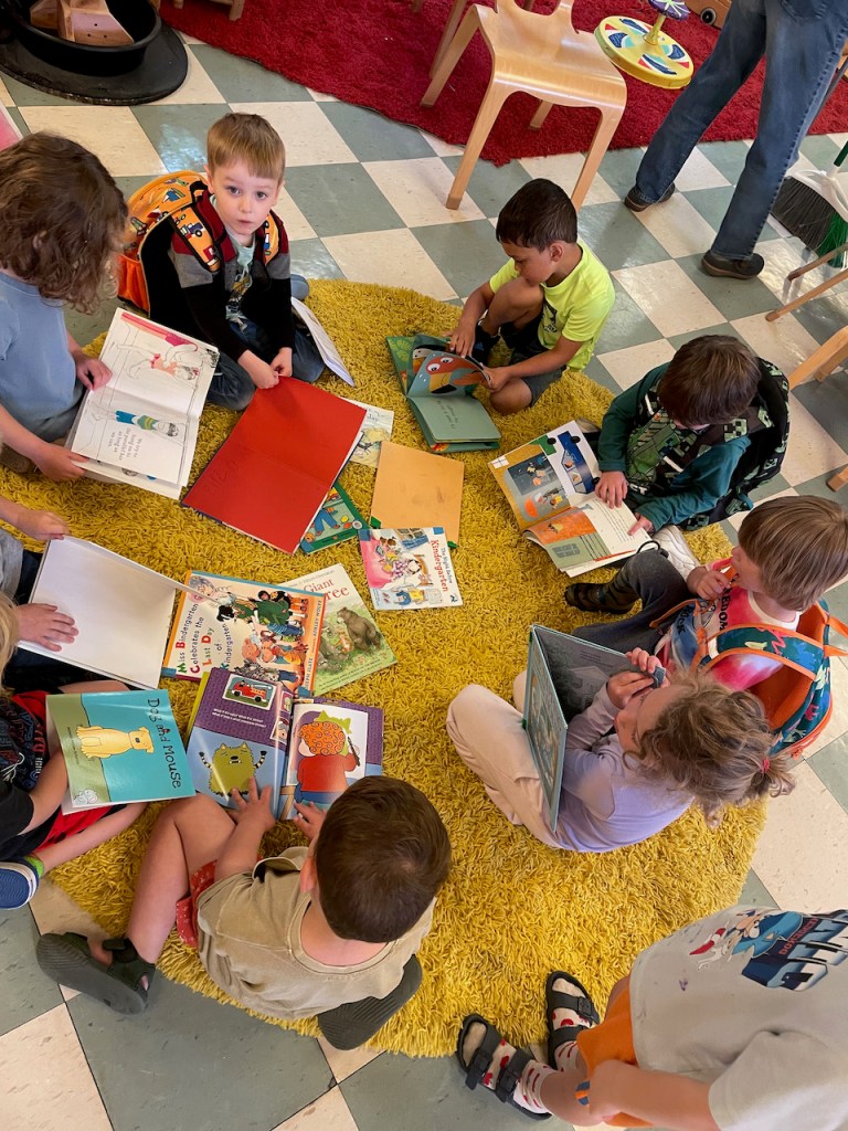 This week we are exploring what it means to “Honor our impulses” (and make the connection between apples/ eating/drinking/bathroom/etc). In the first week of school what I want most is for children to feel safe in getting their basic needs met. For instance, they are allowed to get a drink of water, go to the bathroom, take shoes on and off and change positions whenever they like. In this first week of school we will be introducing all the ways that these needs can be met with or without teacher assistance. It is vitally important that children learn to identify their body’s needs and I have complete confidence that by honoring their body’s impulses now, they will be better suited to respond to social norms/expectations as they age (in other words: they do not need to be forced to sit still now so that one day in 2nd grade they will be able to).