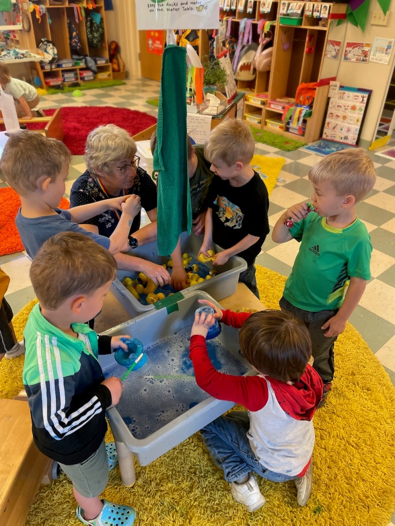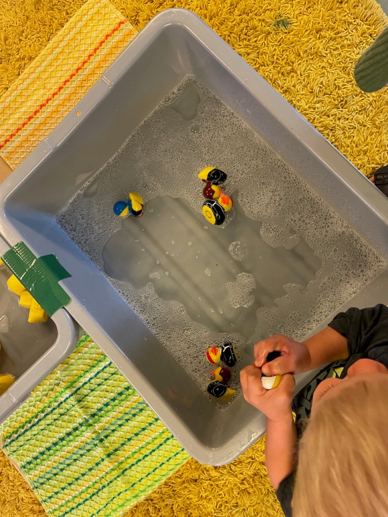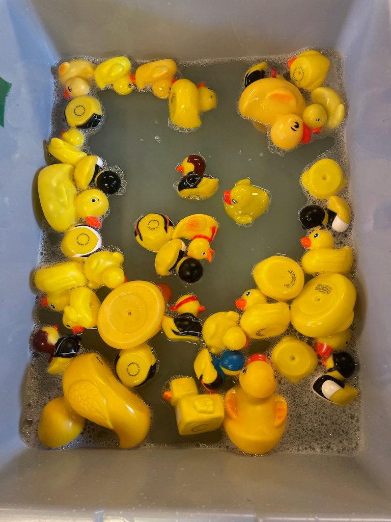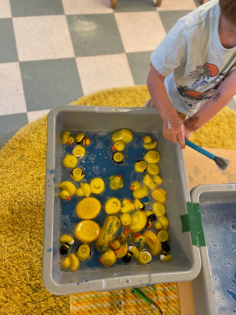 Once upon a time there were tubs of water holding lots of rubber duckies. The water started out clear but as the morning went on it got darker and darker blue. What in the world was going on?
