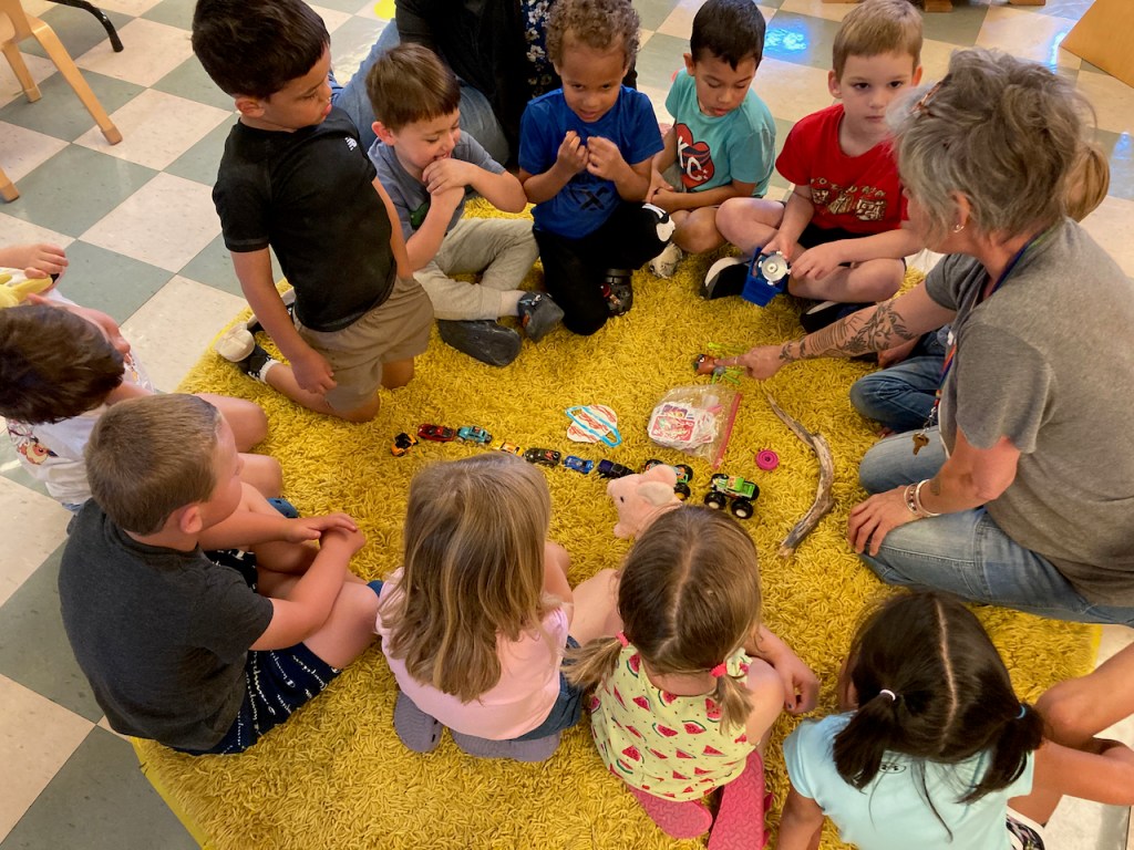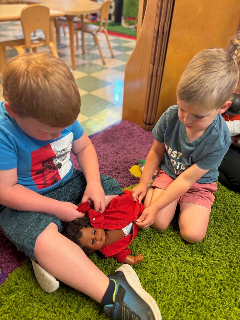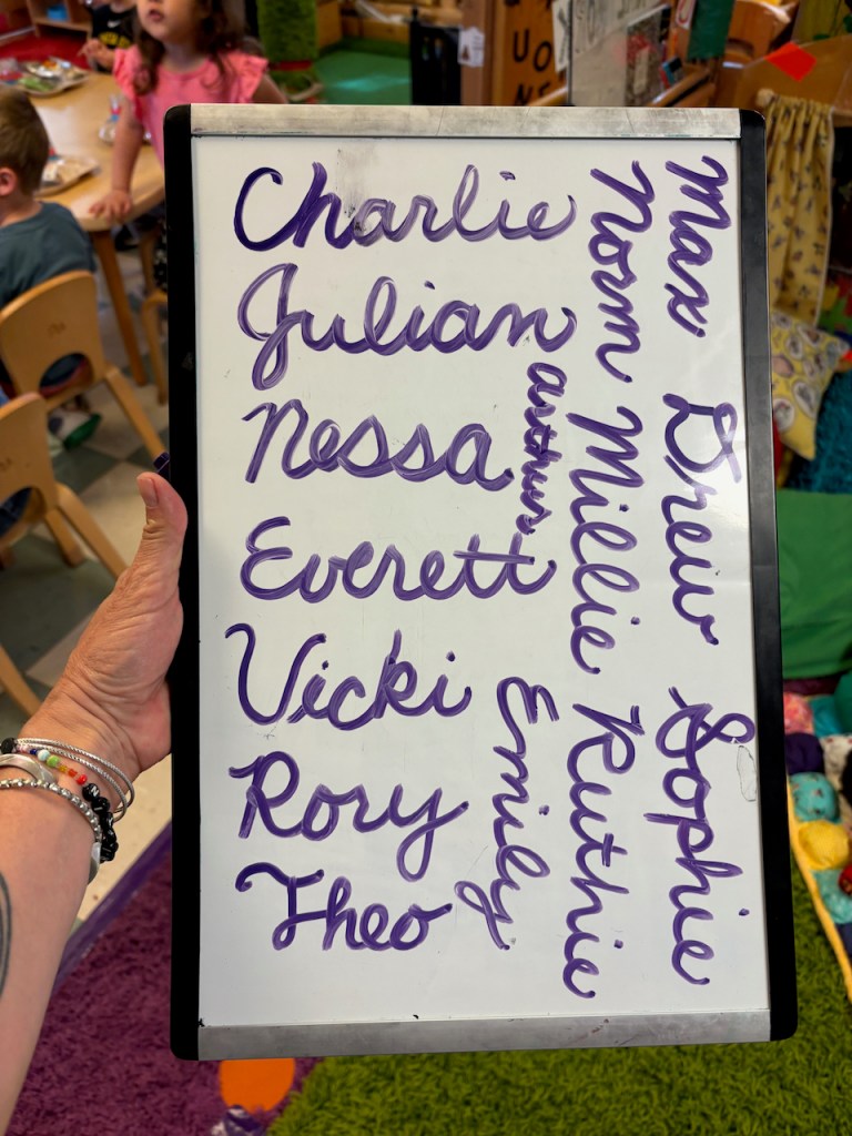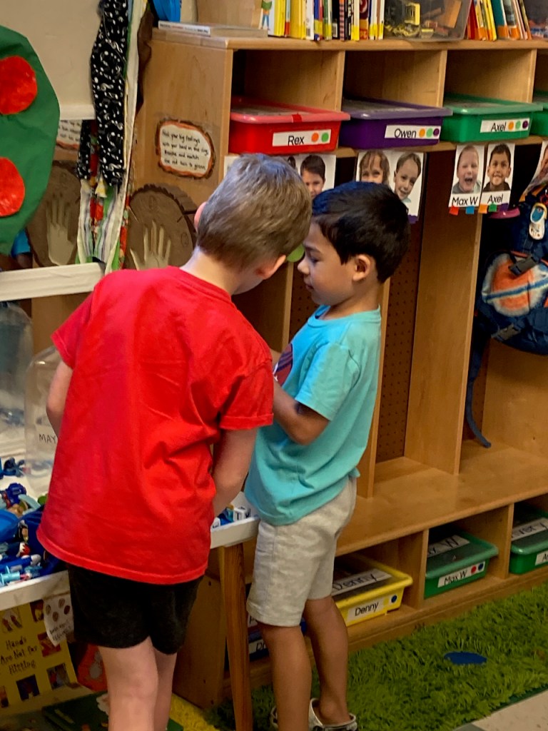 P.S. We have 16 friends graduating to Kindergarten so we’re spending time practicing opening a variety of bags and containers at Snack Time! Here you can see friends giving advice on different techniques.