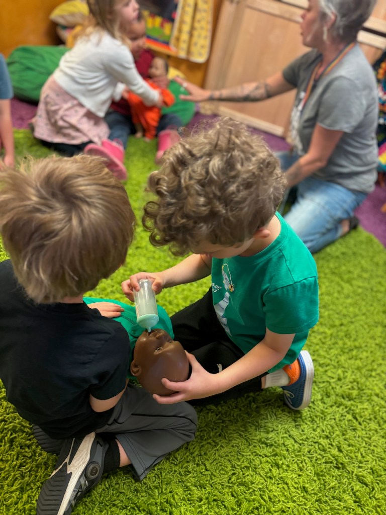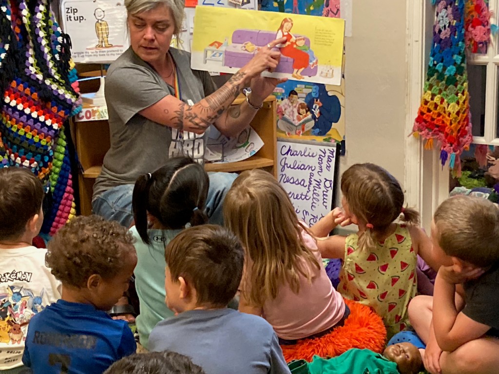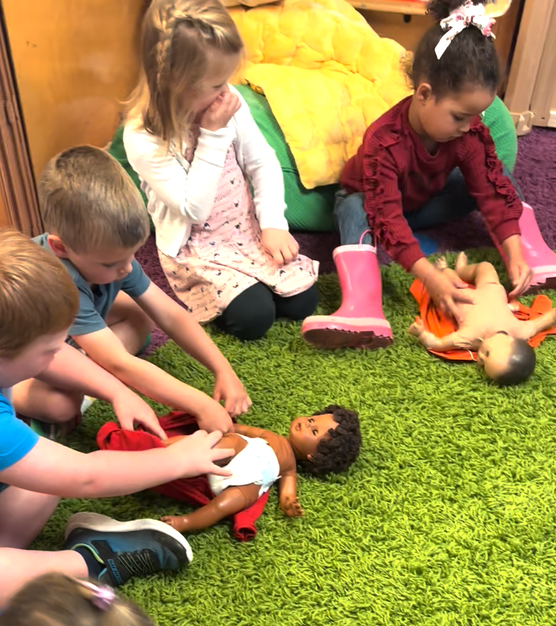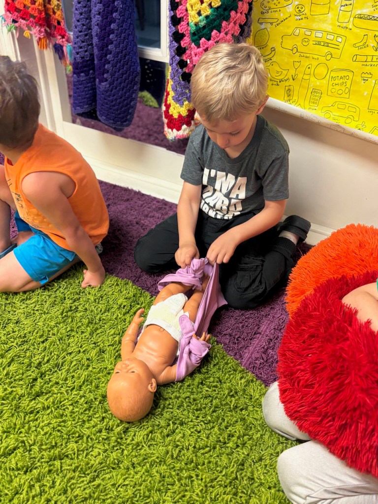 P.S. We have 16 friends graduating to Kindergarten so we’re spending time practicing opening a variety of bags and containers at Snack Time! Here you can see friends giving advice on different techniques.