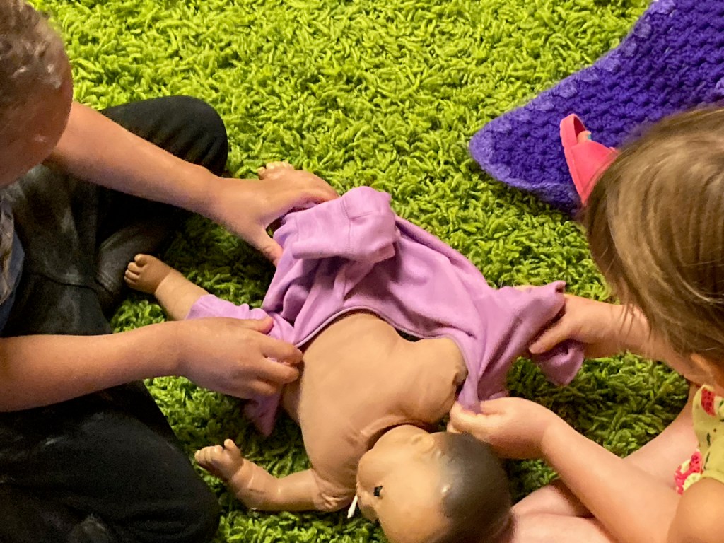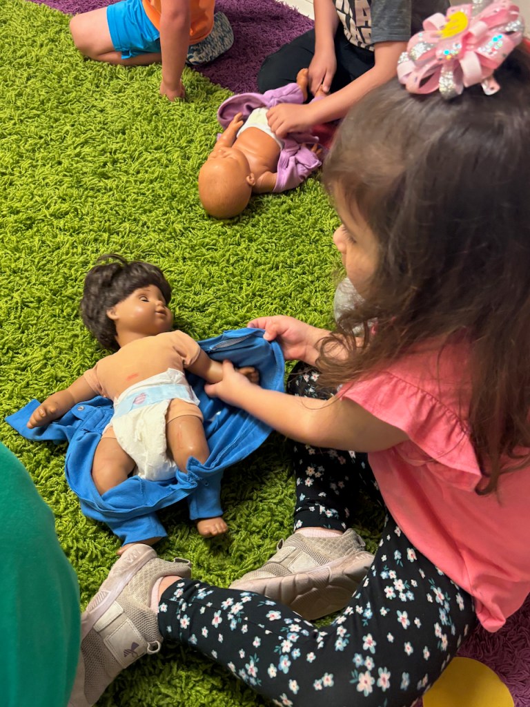 ZIPPER WORK: At Circle Time Ms Kristin brought out 6 baby dolls who all have zippers on their pajamas. Children paired up with a classmate to get them all dressed. A lot of fine motor work and problem solving took place! It was a very sweet experience watching all the children work so carefully together. (Click on the photos to scroll through them full size)