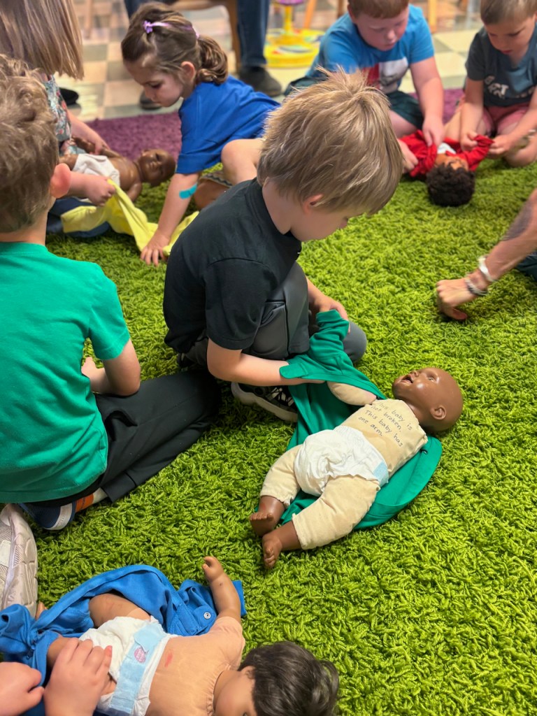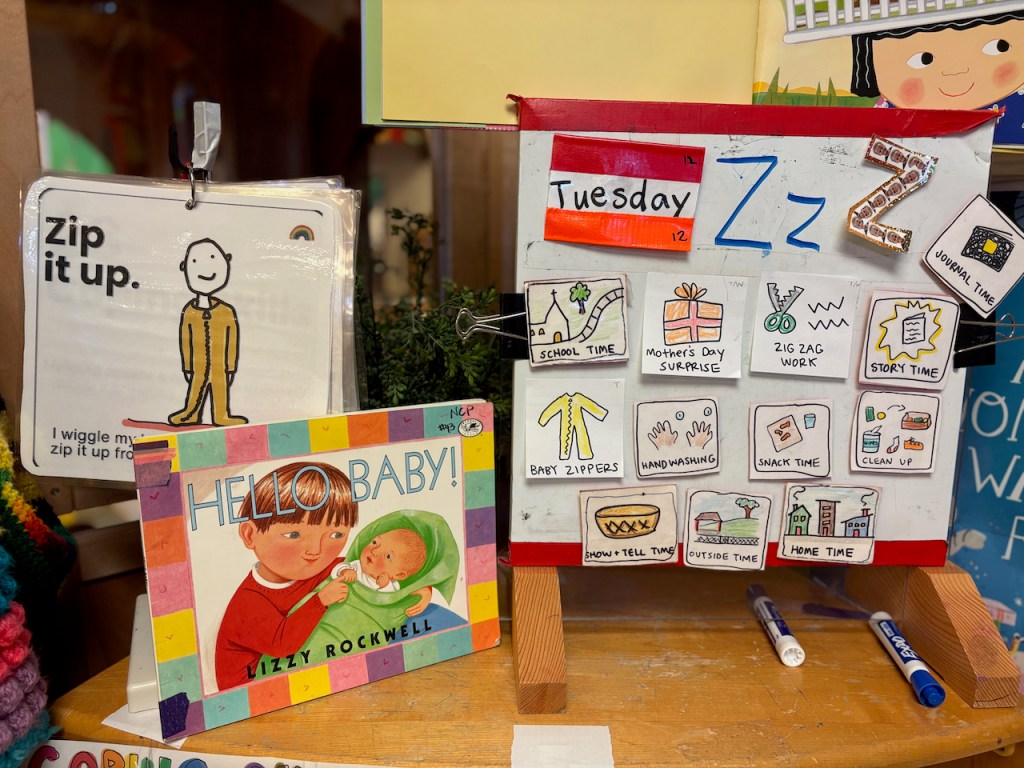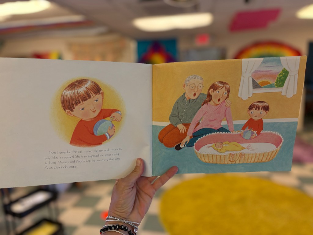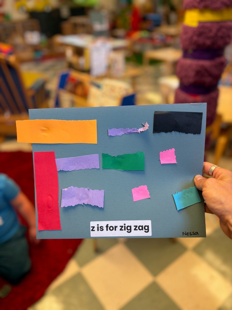 STORY TIME: We read Hello Baby by Lizzy Rockwell. A family welcomes a new baby into their home and we watch an older brother navigate all the noises and changes the baby brings. We also found the letter Z in the baby’s name and two letter Zs in the author and illustrator’s name. Plus our afternoon class finally celebrated Zander’s Golden Letter Day! He waited all year!