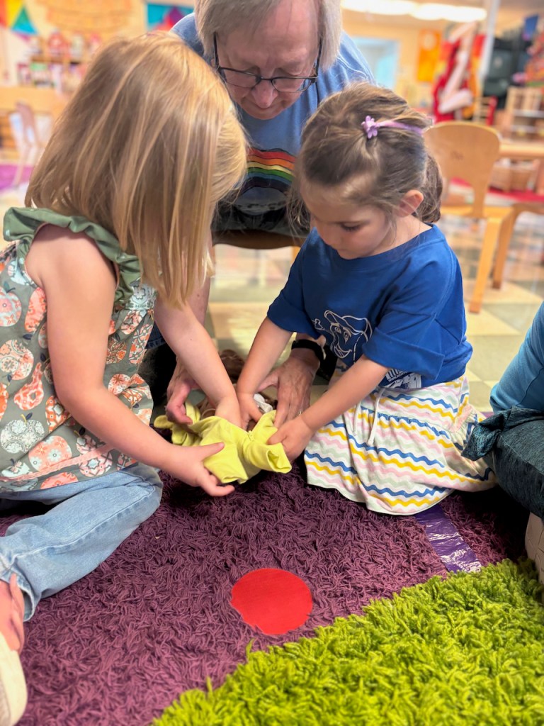 In the book it was the mother’s birthday. Our morning class had a connection because it was Ms Emily’s birthday! We celebrated with a balloon, a card, treats that her own mom made us, and we guessed how old she turned today. Happy Birthday, dear Ms Emily! Thank you for coming to preschool on your birthday!