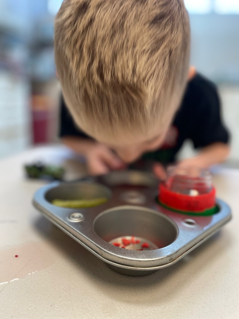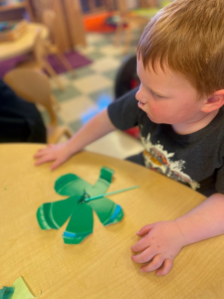 Our March art project has the words, “Things turn green in March” so we kept our eyes out for green things inside and out.