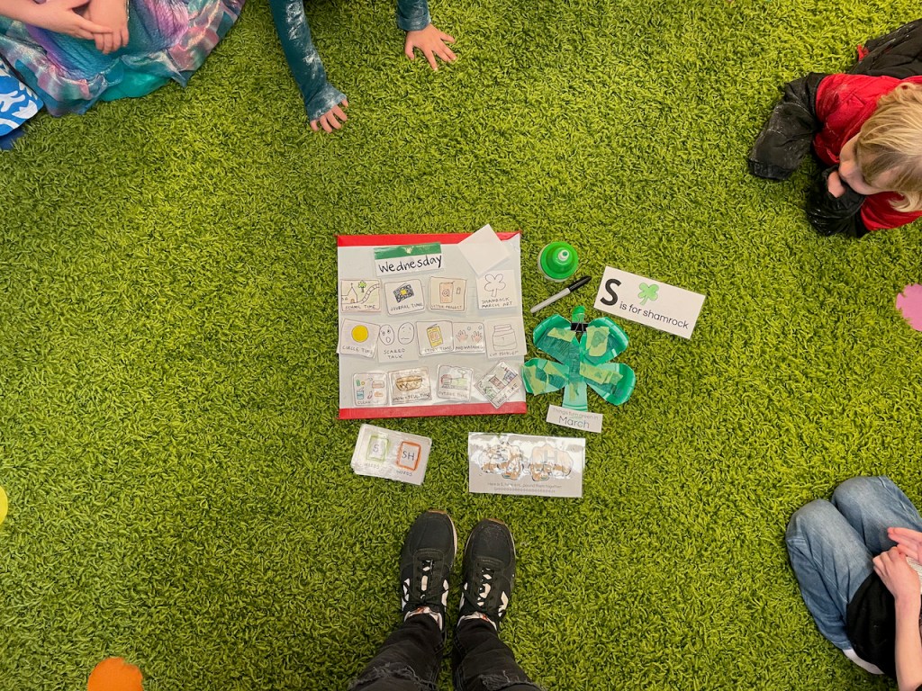 Read on to learn about the serious time, the only SH word in our book, our triple S snack, making shamrocks and playing hide and seek!