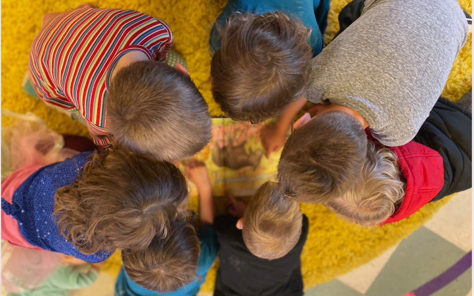 Once upon a time a preschooler fell and cut his lip. It was a serious moment and all the rest of the children were told to be very quiet and slow. Usually children can run on the track, use loud voices, ride fast on the boat, play the instruments, send cars down a ramp but those things are loud and fast. What ever would they do?
