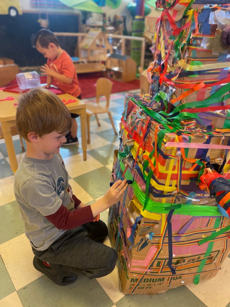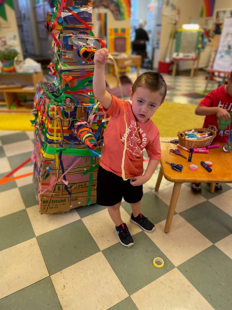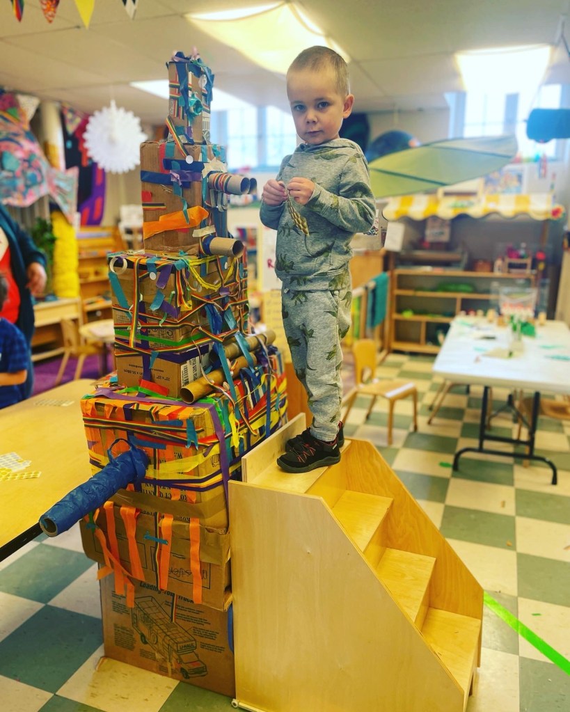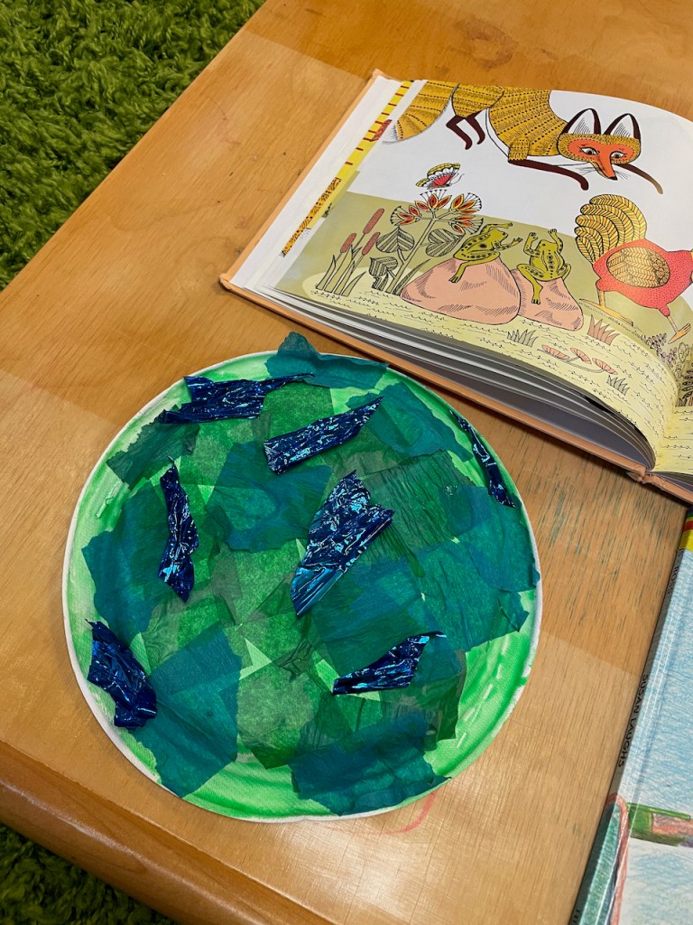 There were many choices because Ms Kristin bought a box of 100 blowers to make a party favor for the children in honor of Leap Year (notice I am being very clear that this isn’t a preschool art project! ). These are great fun and promote big inhales and long exhales which can be quite regulating and calming (perhaps balancing out the intensity of the sound!). Ms Kristin also demonstrated a version of Leap Frog during our Leap Day conversation for those who wanted it!