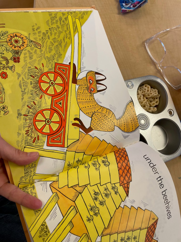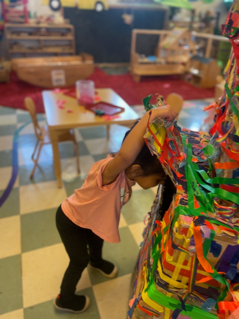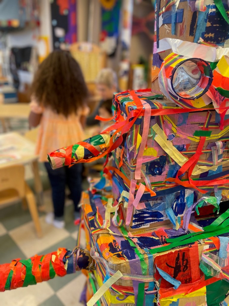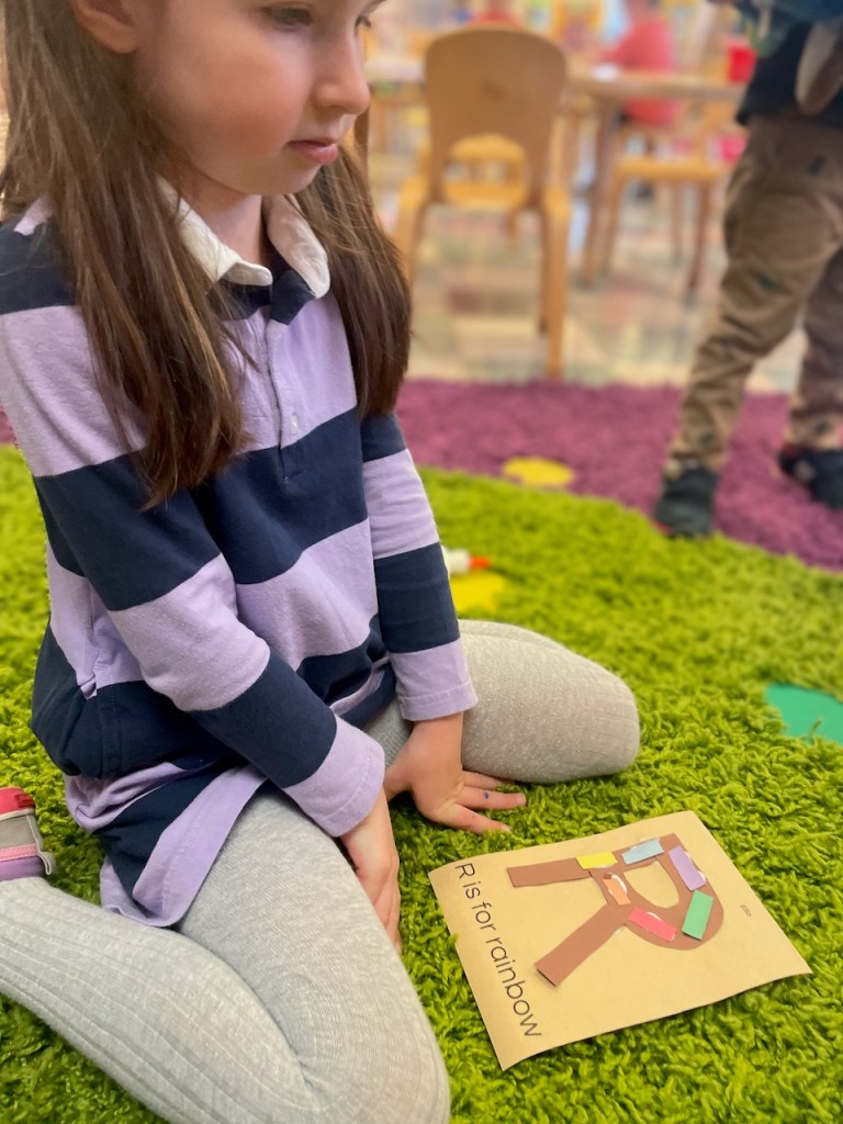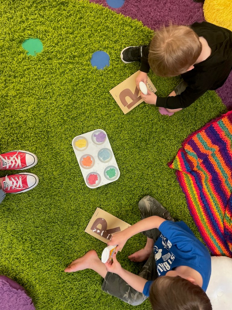 There were many choices because Ms Kristin bought a box of 100 blowers to make a party favor for the children in honor of Leap Year (notice I am being very clear that this isn’t a preschool art project! ). These are great fun and promote big inhales and long exhales which can be quite regulating and calming (perhaps balancing out the intensity of the sound!). Ms Kristin also demonstrated a version of Leap Frog during our Leap Day conversation for those who wanted it!
