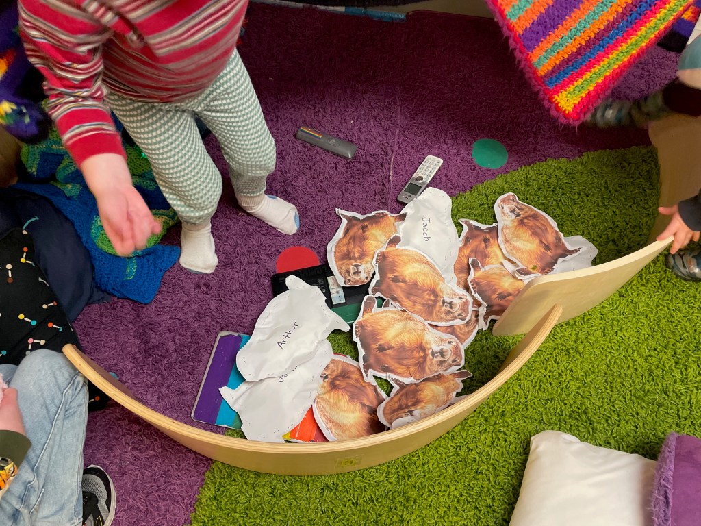 In the corner hideout with all the pillows and blankets. Ms Kristin had to really dig around to find them all!