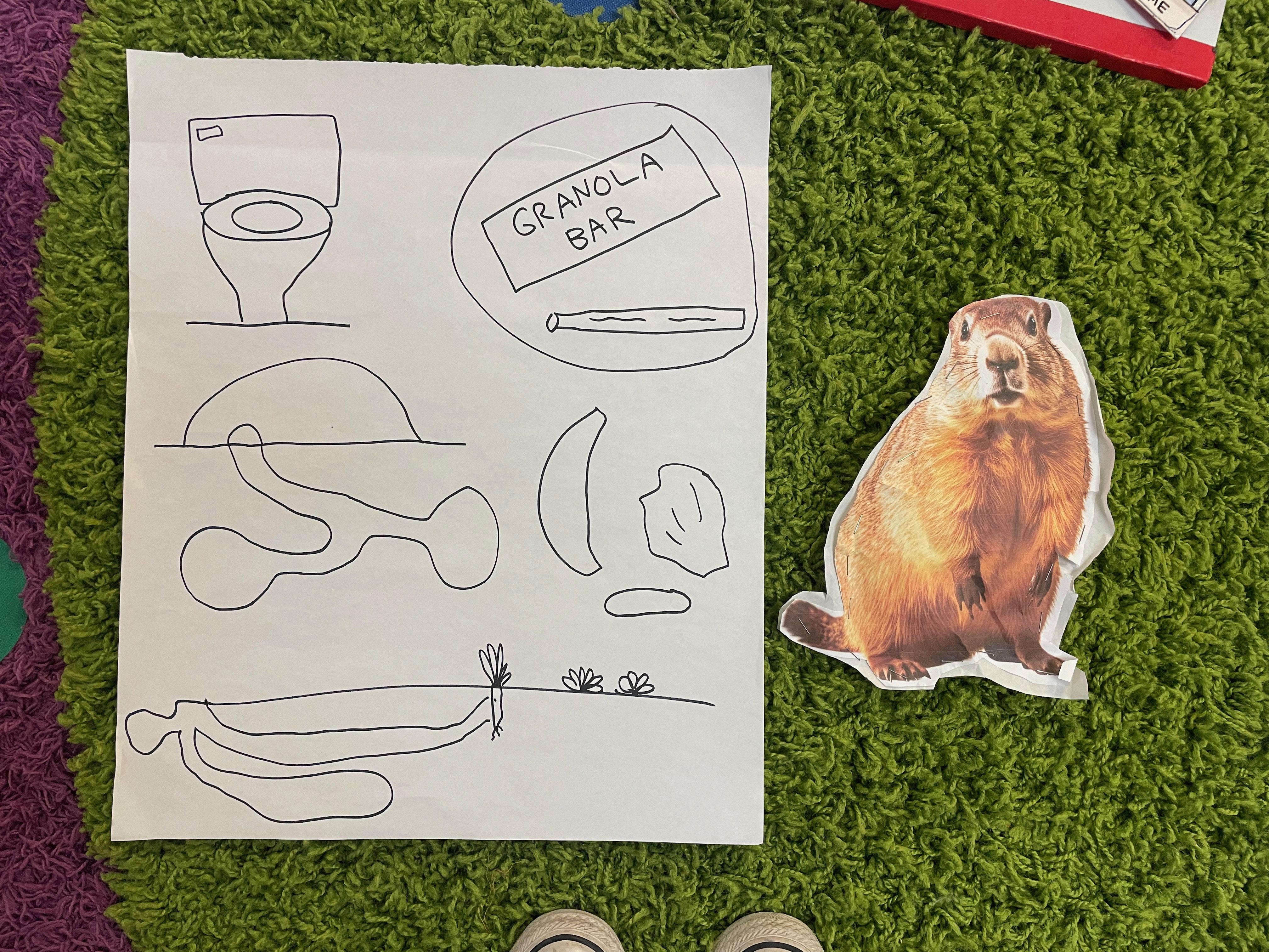 Groundhogs make a separate room in their burrows to go to the bathroom in! That’s like us at preschool! Your child can show you the bathroom in the above picture.