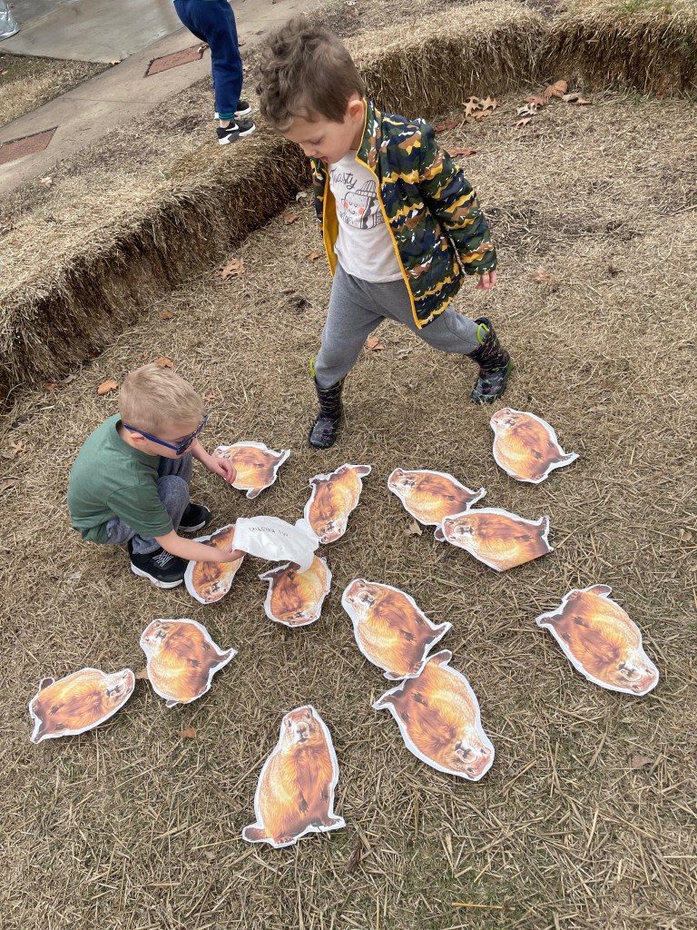 We ended the day outside and looked for our shadows AND our paper groundhogs’ shadows. The sun came and went behind the clouds so it was kind of tricky!