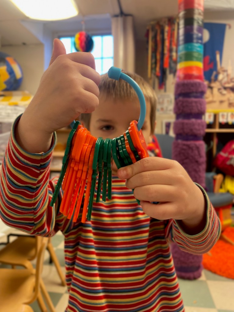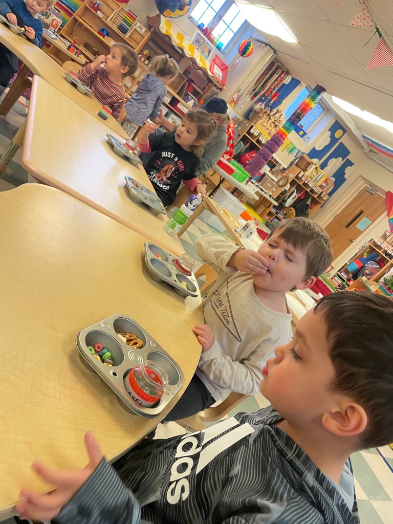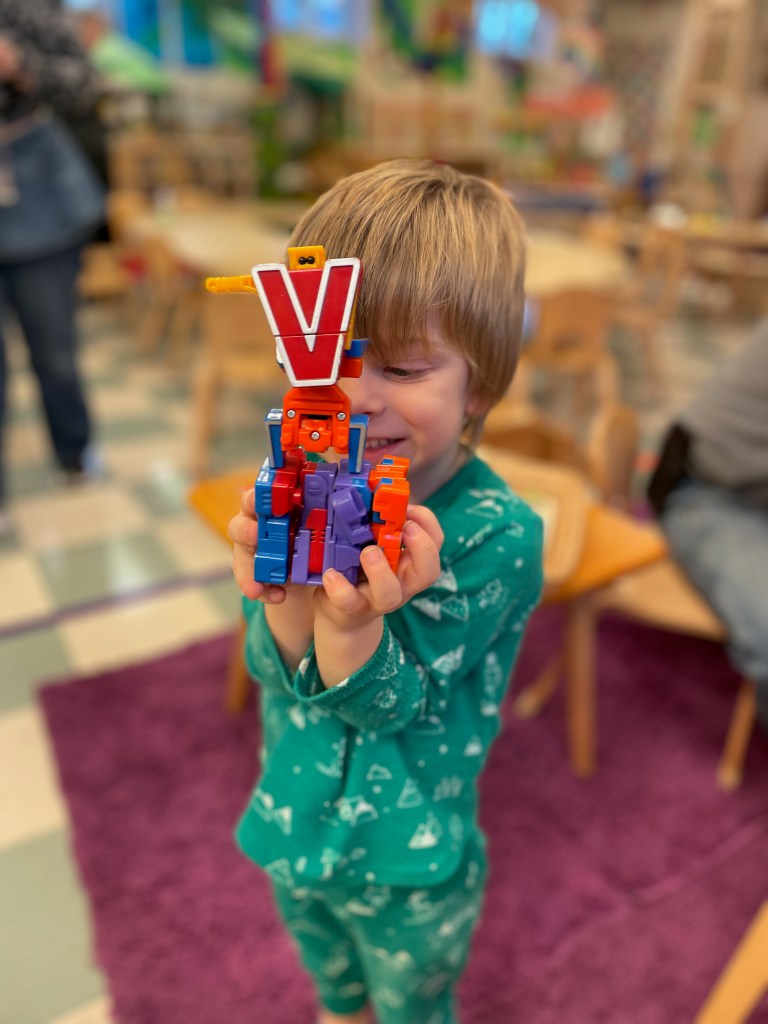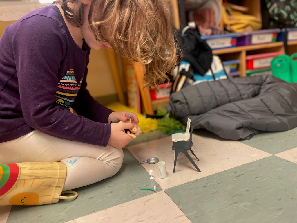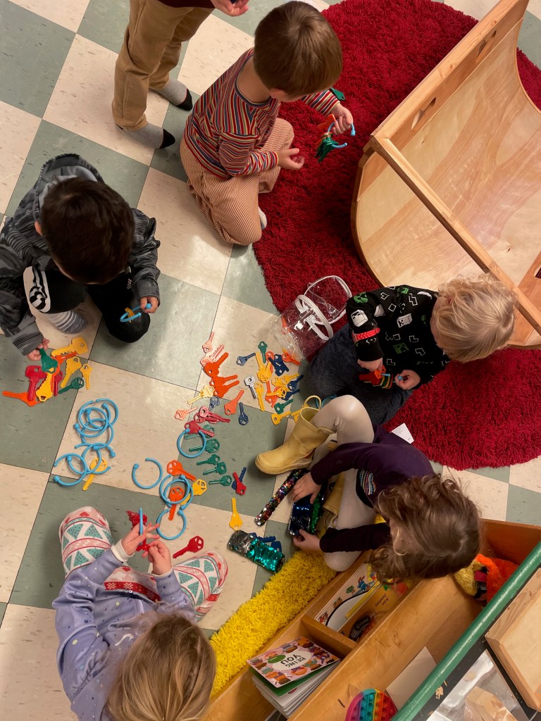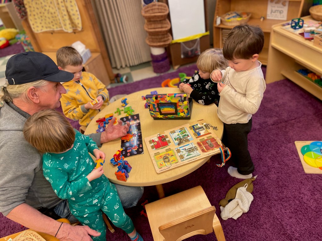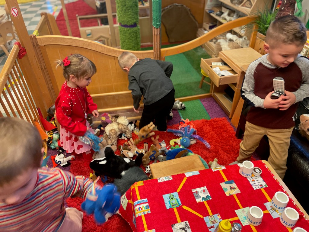 Our Friday “Purple Day” Class was together for THE FIRST TIME in 2024 due to a Snow Day and regularly scheduled day off. The classroom alternated between near silence and high volume…such a wonderful day together. Every corner was played in and every offered table was worked at.