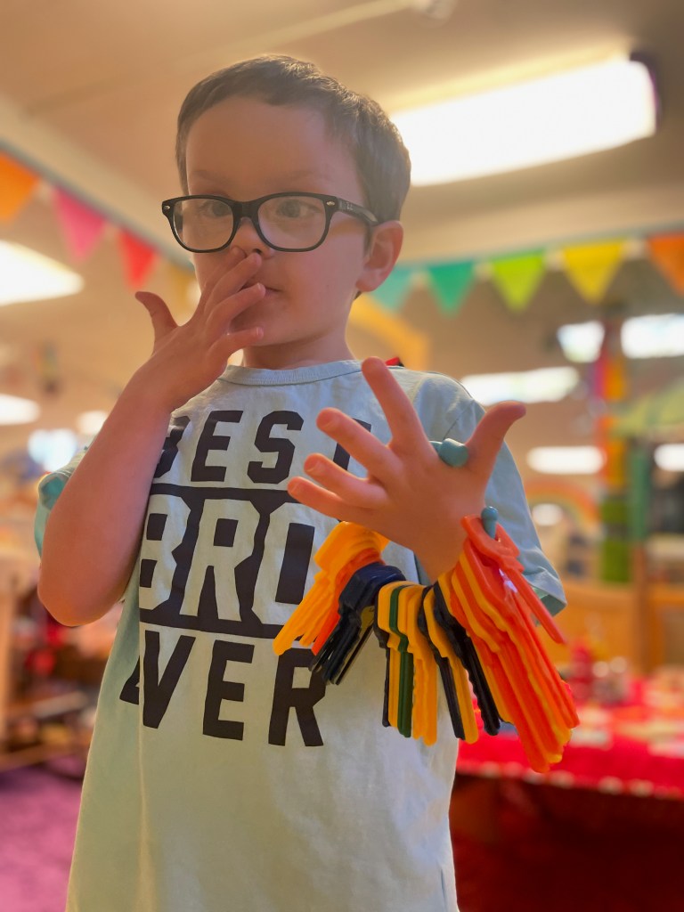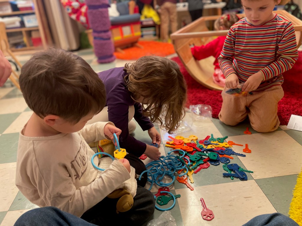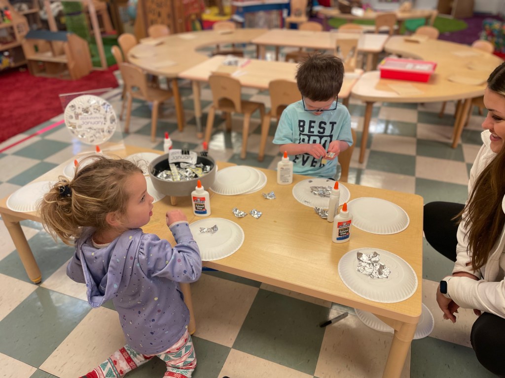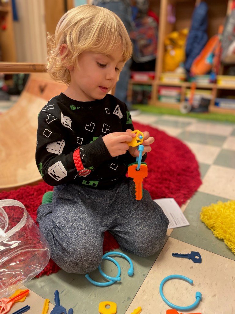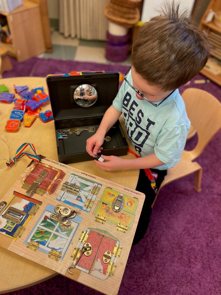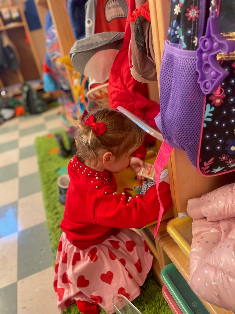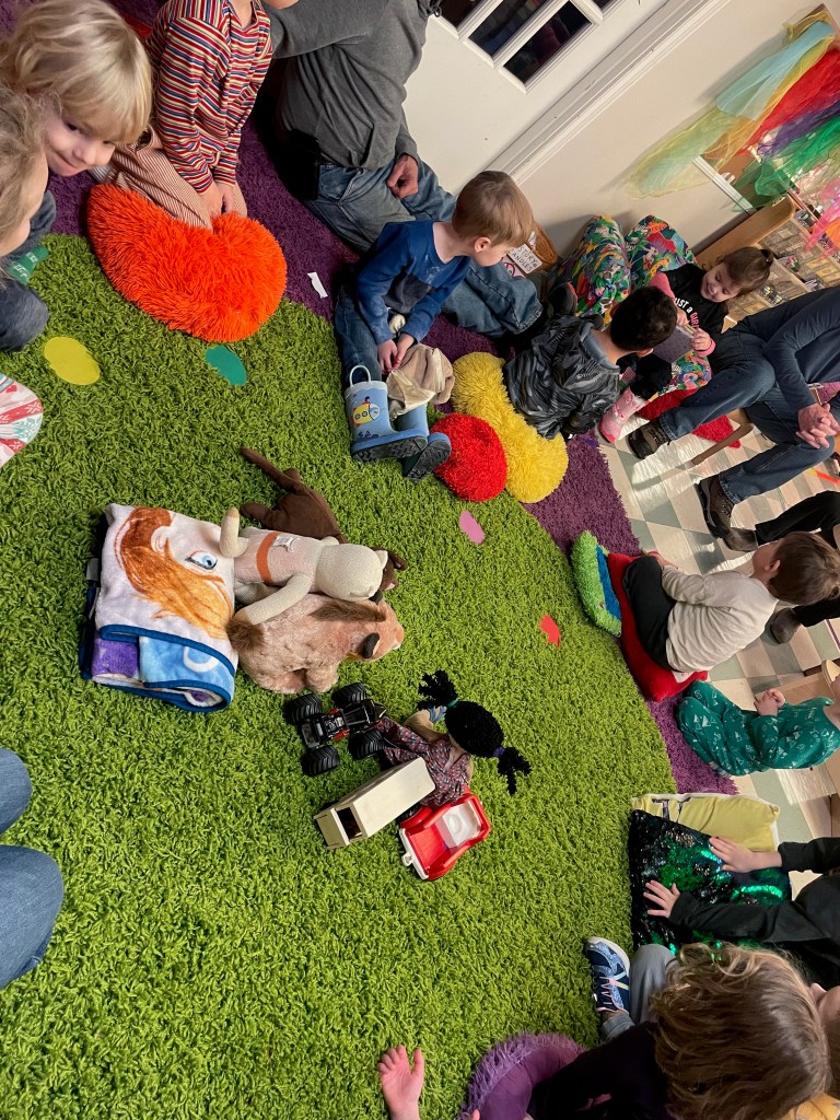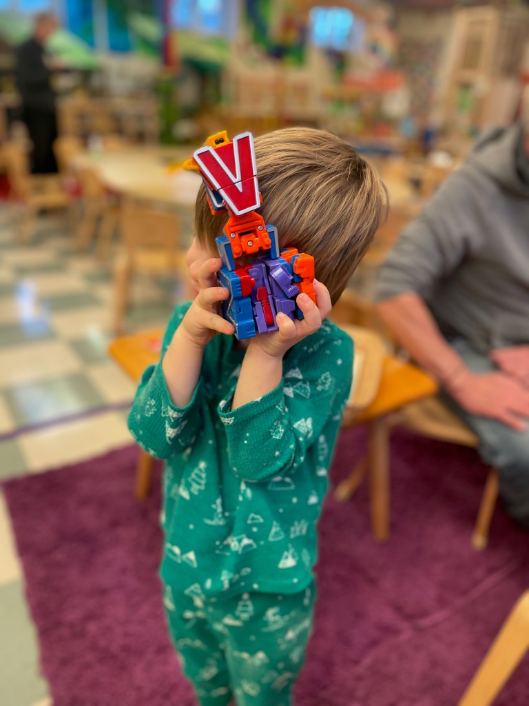 Our Friday “Purple Day” Class was together for THE FIRST TIME in 2024 due to a Snow Day and regularly scheduled day off. The classroom alternated between near silence and high volume…such a wonderful day together. Every corner was played in and every offered table was worked at.