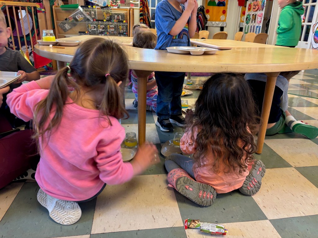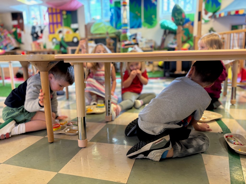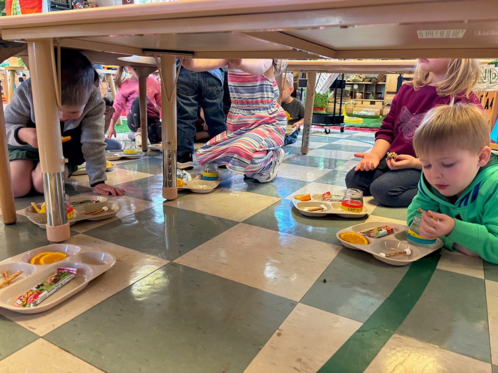 At Snack Time we got small and could eat under a table (handy since all the chairs were gone!).