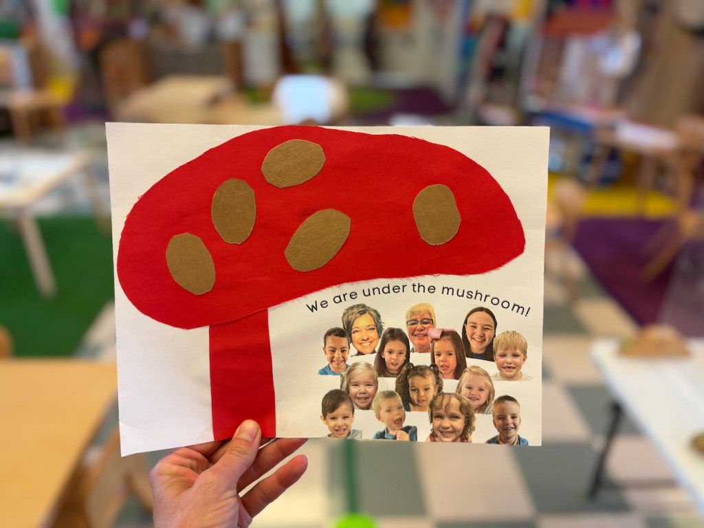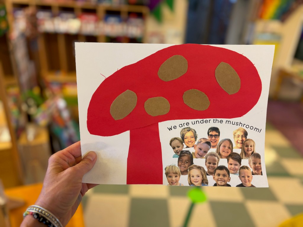 We revisited our book about animals taking shelter from the rain under a mushroom in Mushroom in the Rain and made paper mushrooms for our whole class to fit under!