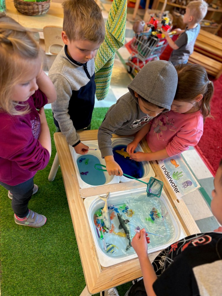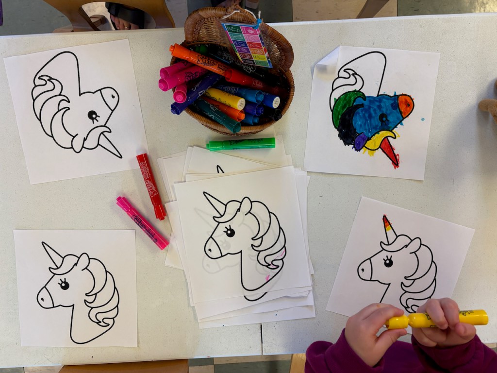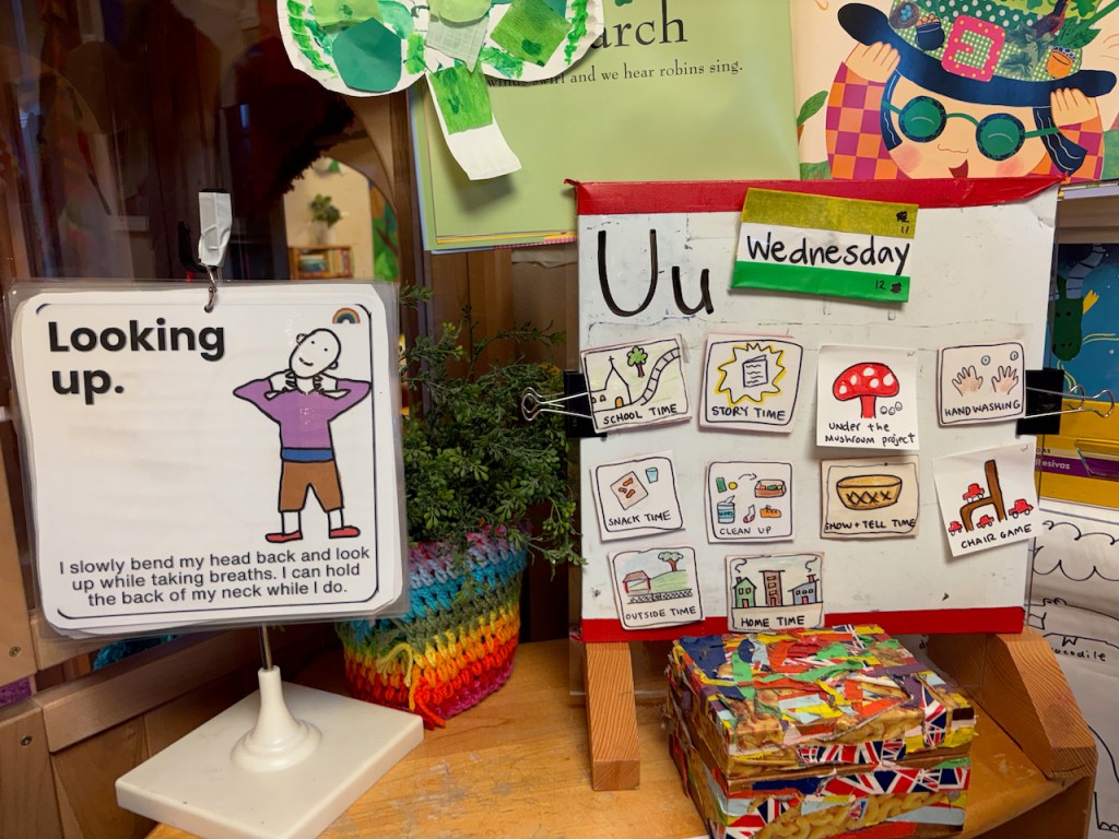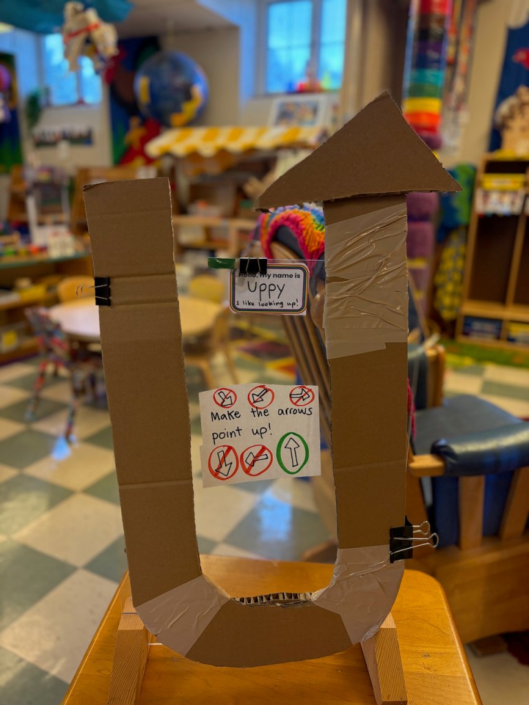 New things in the classroom for U Week: the tables are rearranged and children are invited to go under them to play and work. We have underwater puzzles, underwater animals in the water tables, unicorn coloring work and 4 U shaped balance boards. We’re adding arrows (all pointing up) to our new Alphabet Friend, Uppy. When we find an arrow that isn’t pointing up, we can say another U word “uh ho!” and fix it.
