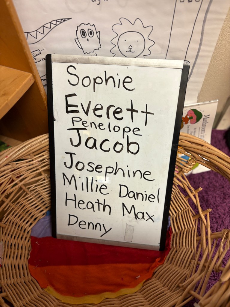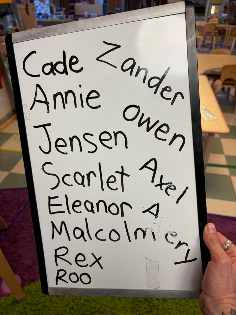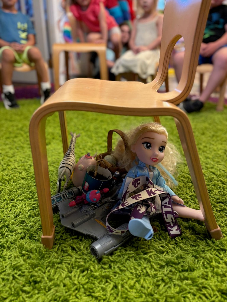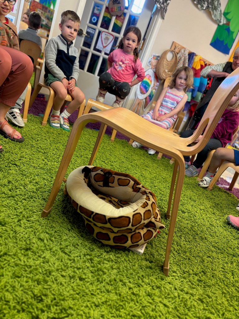During Circle Time we played a Chair Game with our Show and Tell things. Ms Kristin successfully fit all of our Show and Tell things under the chair! Children then waited for their name to be written to collect their things. Way to go, kids!