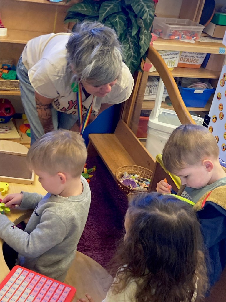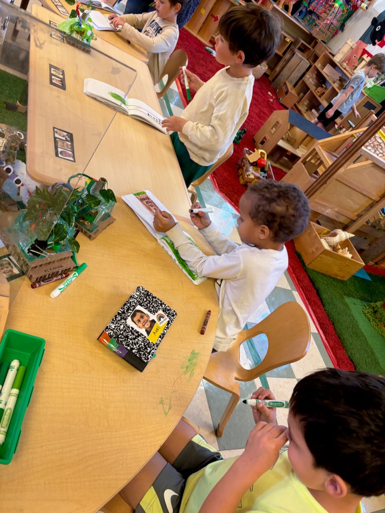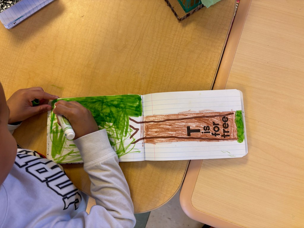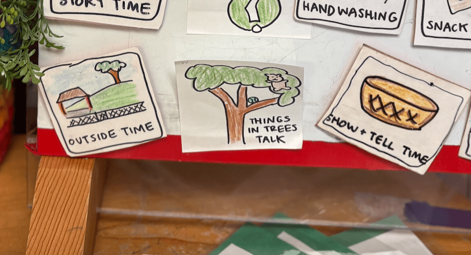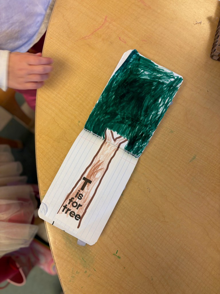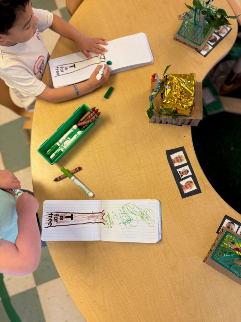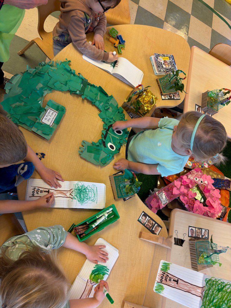 Gary the Grassy G Alphabet Friend showed up when kids started drawing grass under their trees. We pretended he loved it!