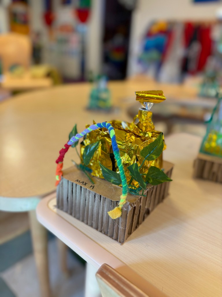 These leprechaun houses are looking very magical as table decorations…children take them home on the last day of the week.