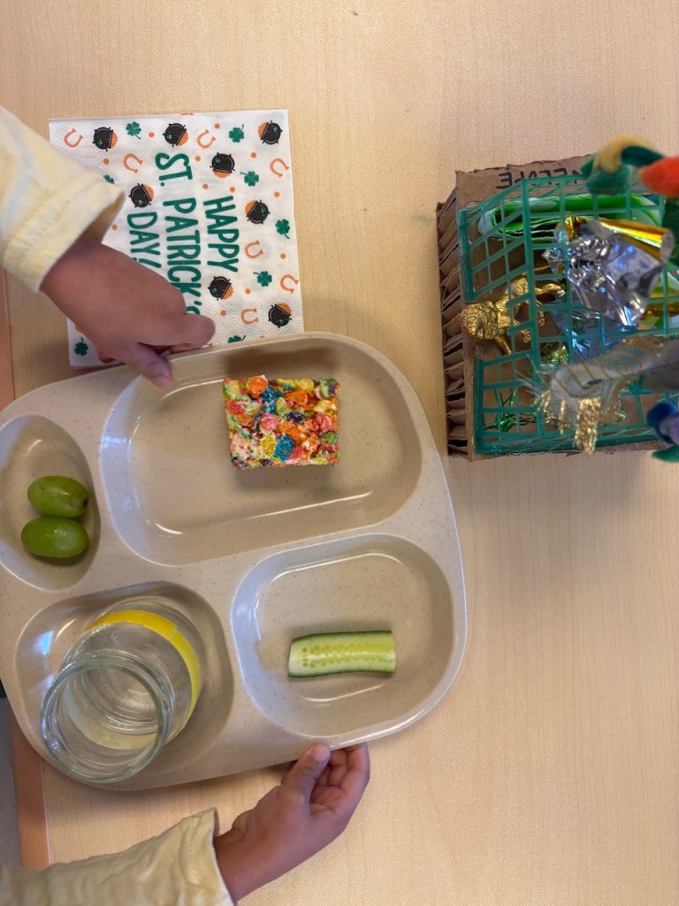 All week we are having a Tom Tom the Leprechaun Party during Snack Time.