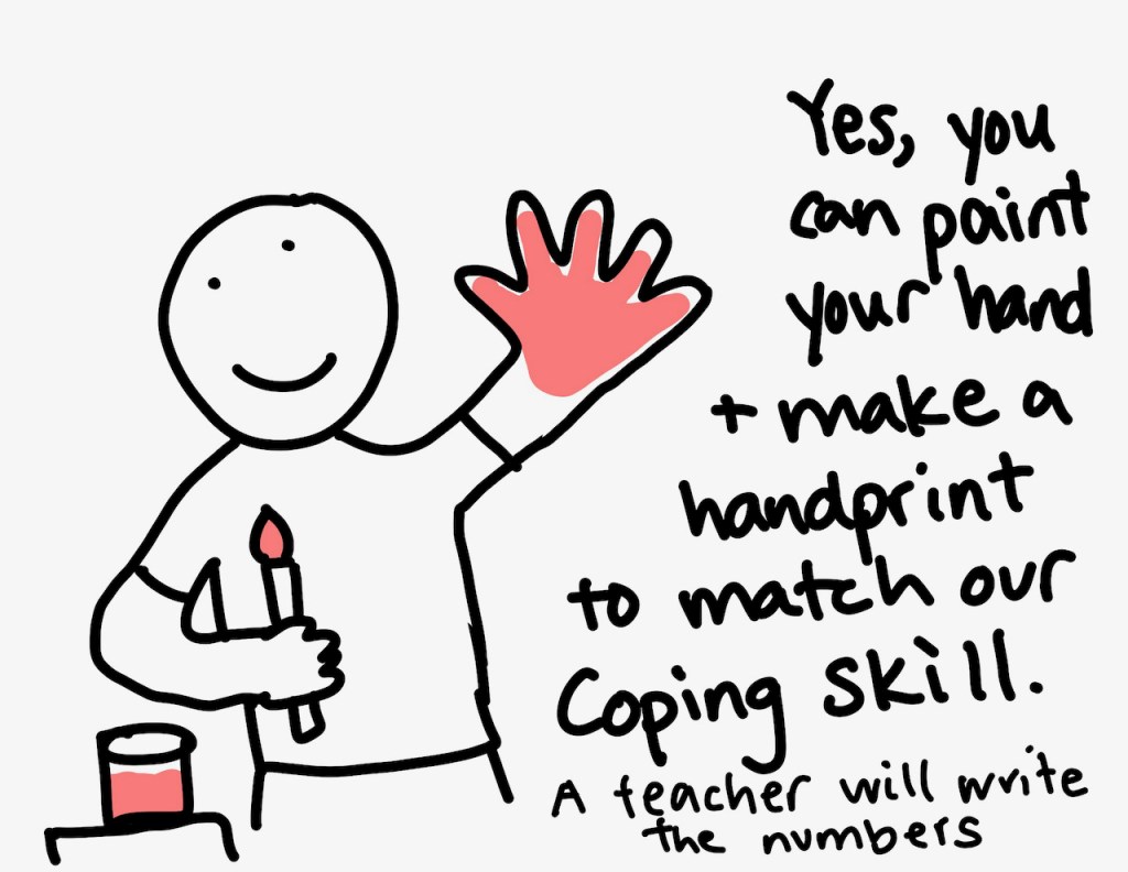 This week we are counting fingers while slowly tracing them. This brings us gently into the present moment and provides sensory input from feeling and auditory input by counting aloud.