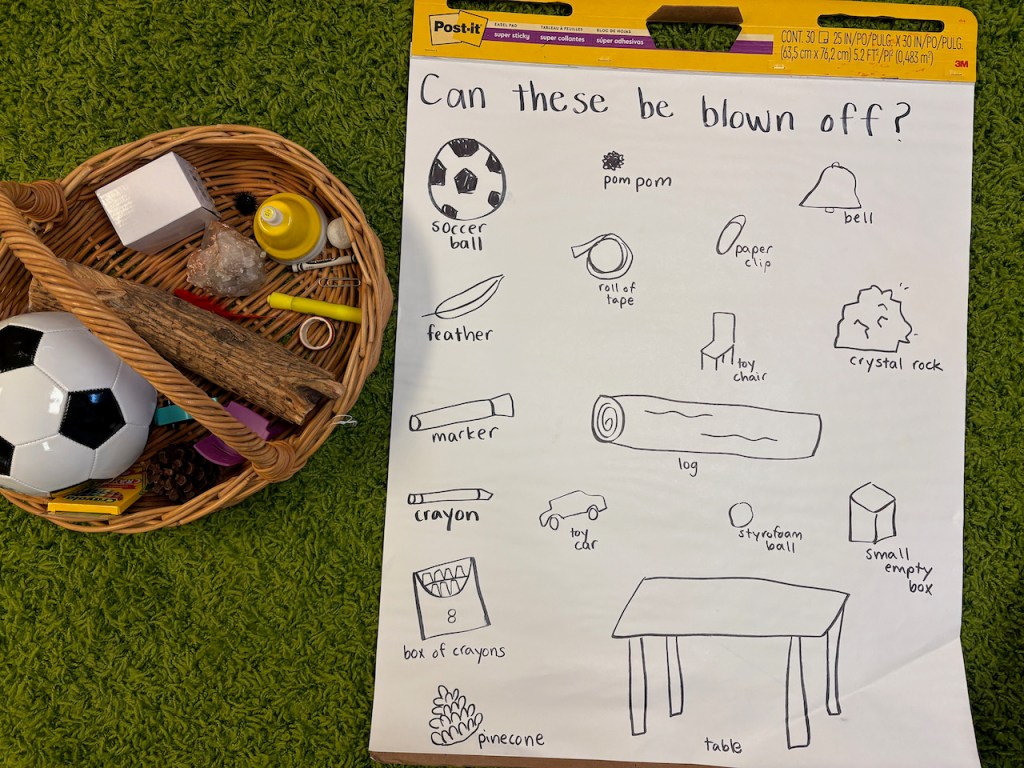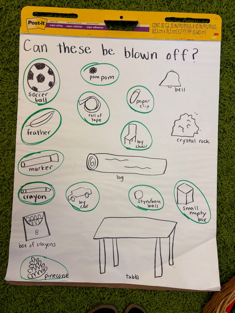 3 Color questions: Today we read The Paperboy by Dav Pilkey (also from our local library) and learned about a big kid who gets up early to roll newspapers and deliver them. During Circle Time we rolled newspapers and practiced throwing them to different “houses” in our classroom.