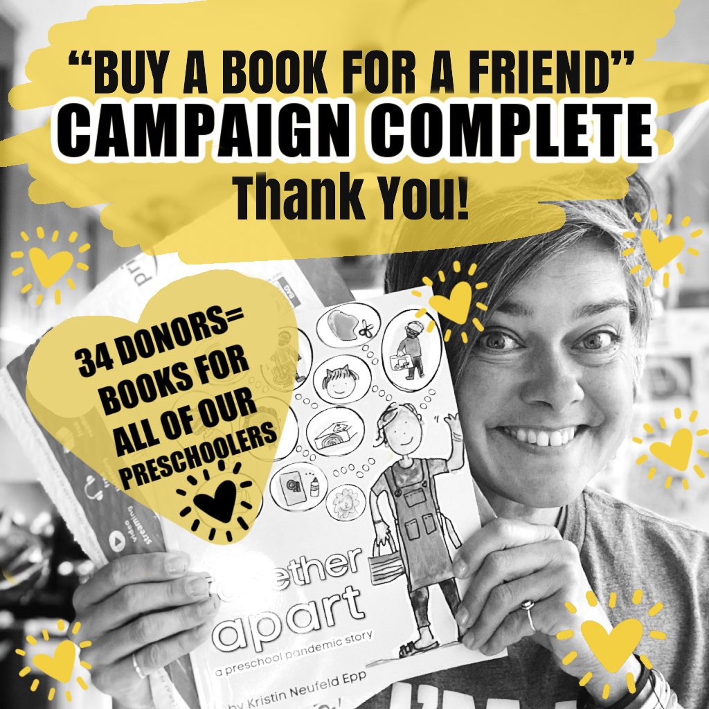 Thanks to the generosity of 34 different donors, we were able to purchase enough books for all our 2020-2021 preschoolers. Thank you, dear community, for continuing to love these young children. Your support brings to life the very experience of being together…apart.